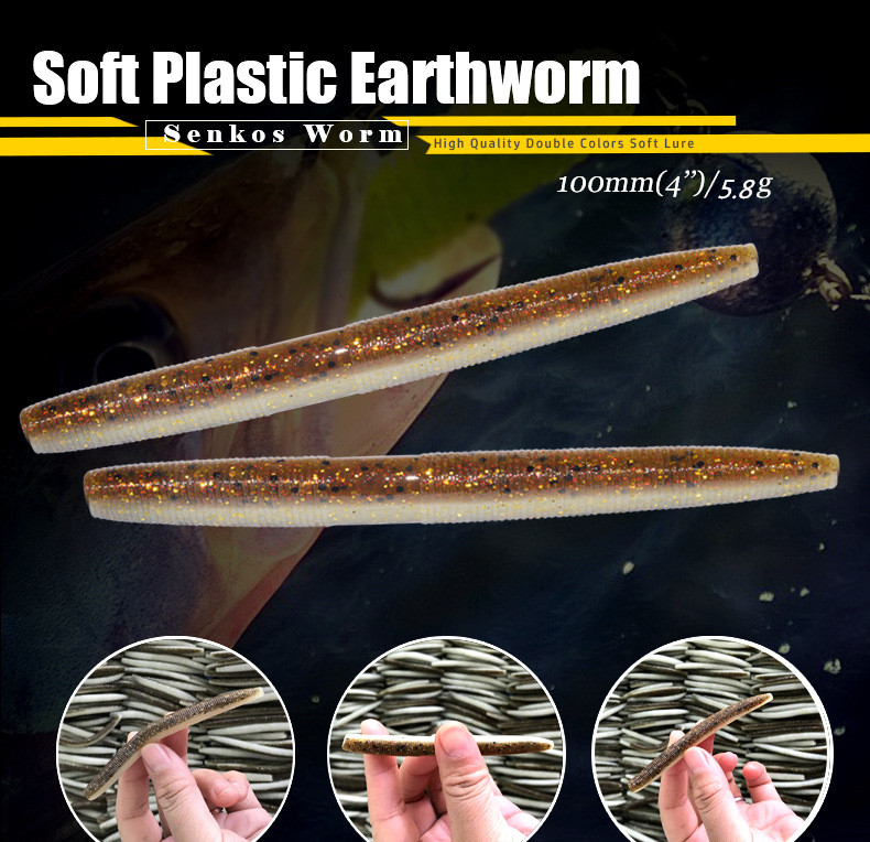 雙色面條蟲路亞餌假餌 senkos 維基釣組 Wacky 10cm/5.8g 8只裝1入