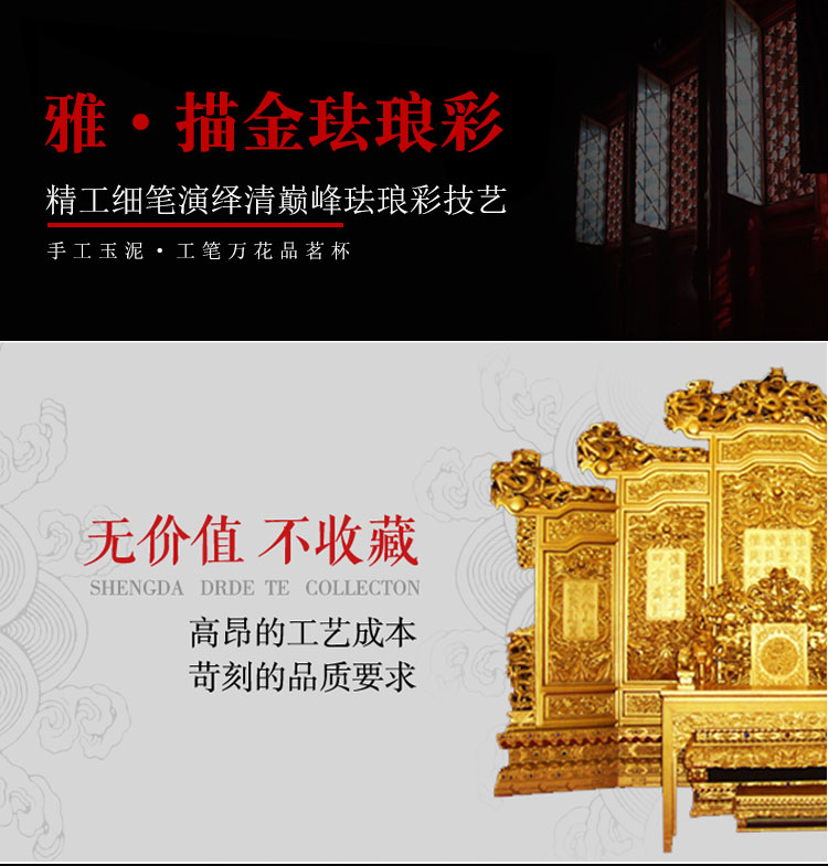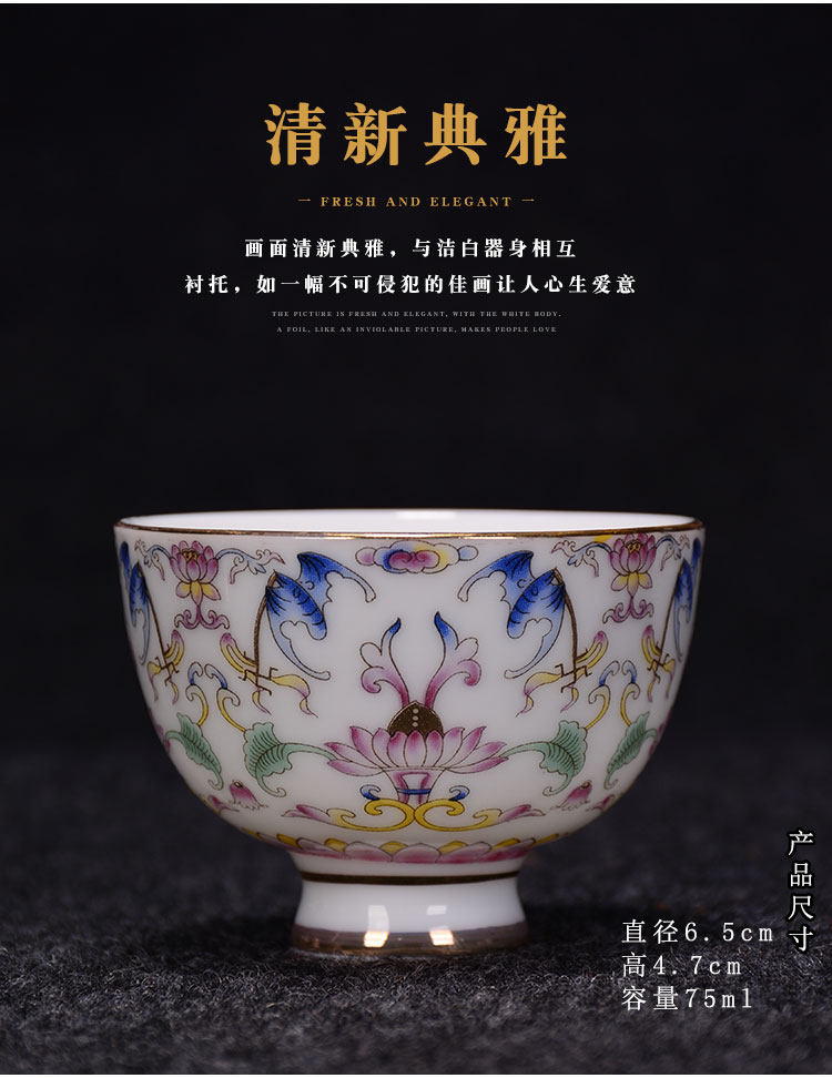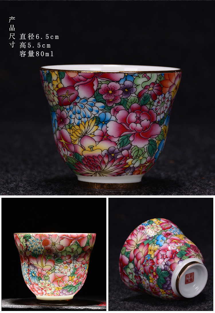 陶生活景德鎮陶瓷青花金地萬花描金品茗杯功夫茶杯茶具主人杯單杯1入