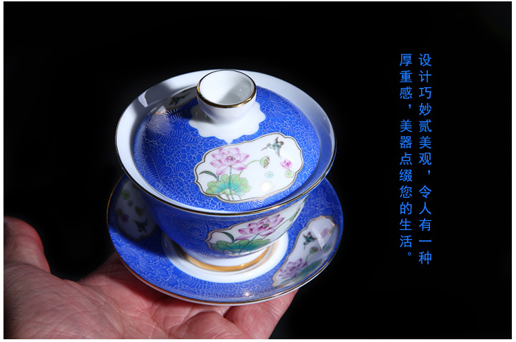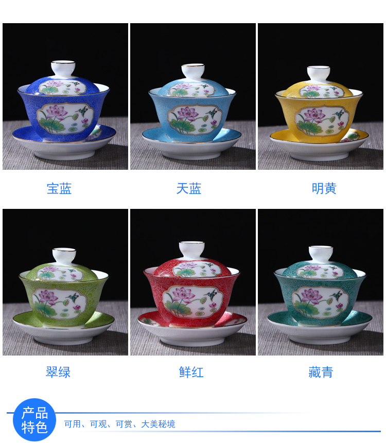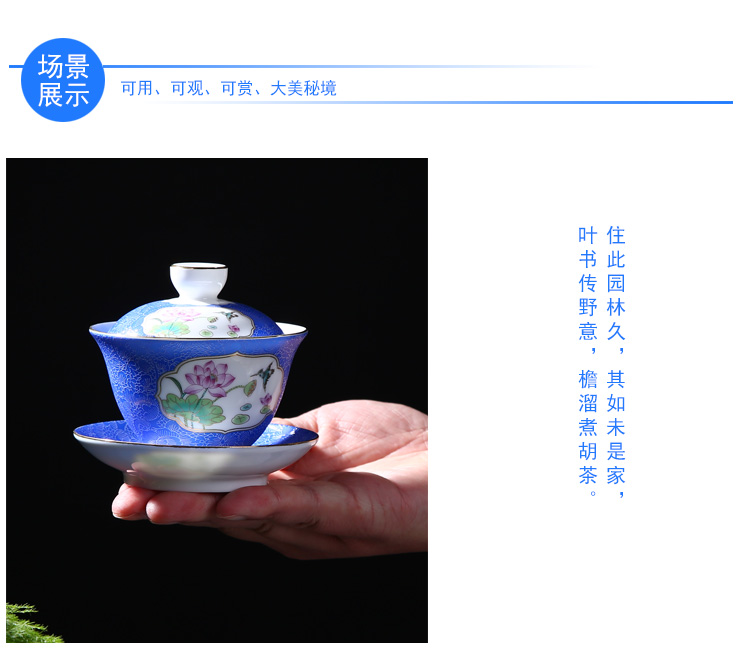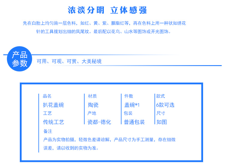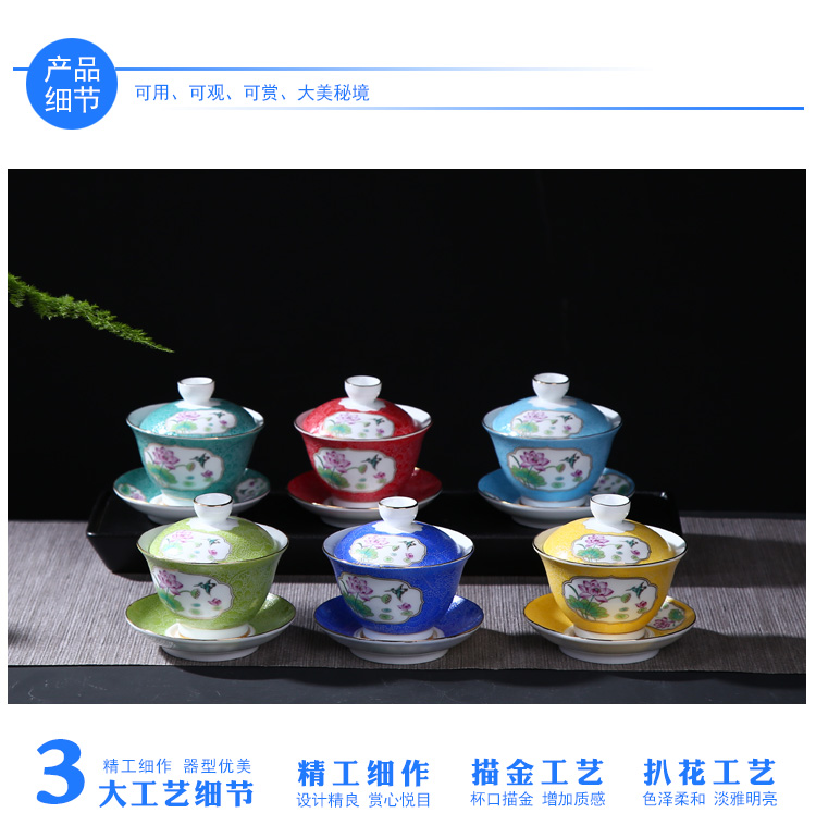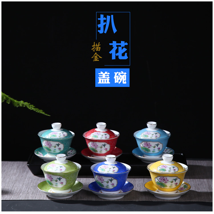 陶生活扒花蓋碗茶杯景德鎮陶瓷茶具三才杯大號茶碗茶泡茶碗手抓壺1入