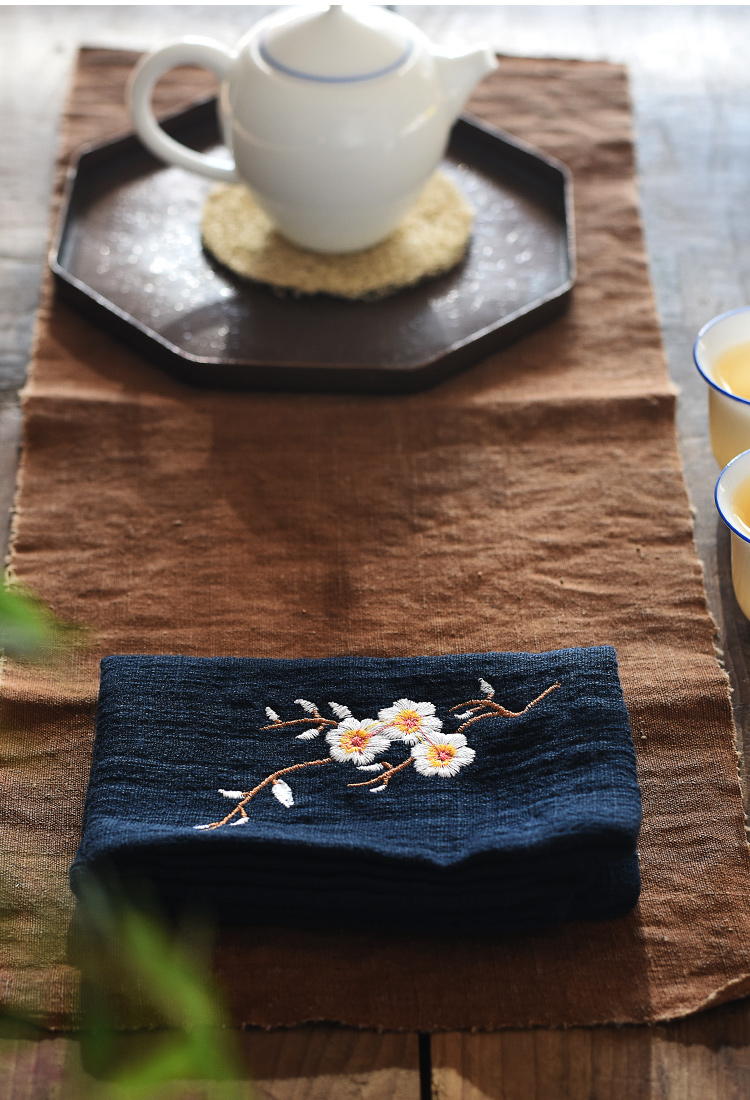 陶生活純棉麻茶巾吸水加厚中國風茶布刺繡茶墊功夫茶具茶道配件1入