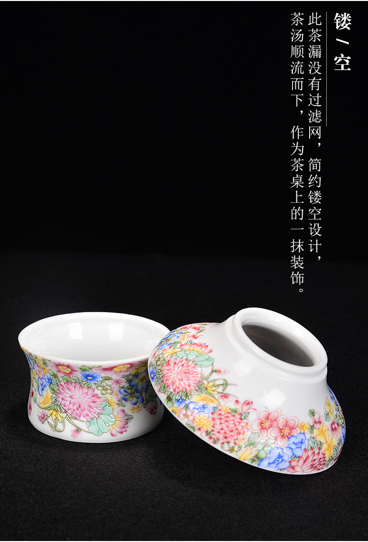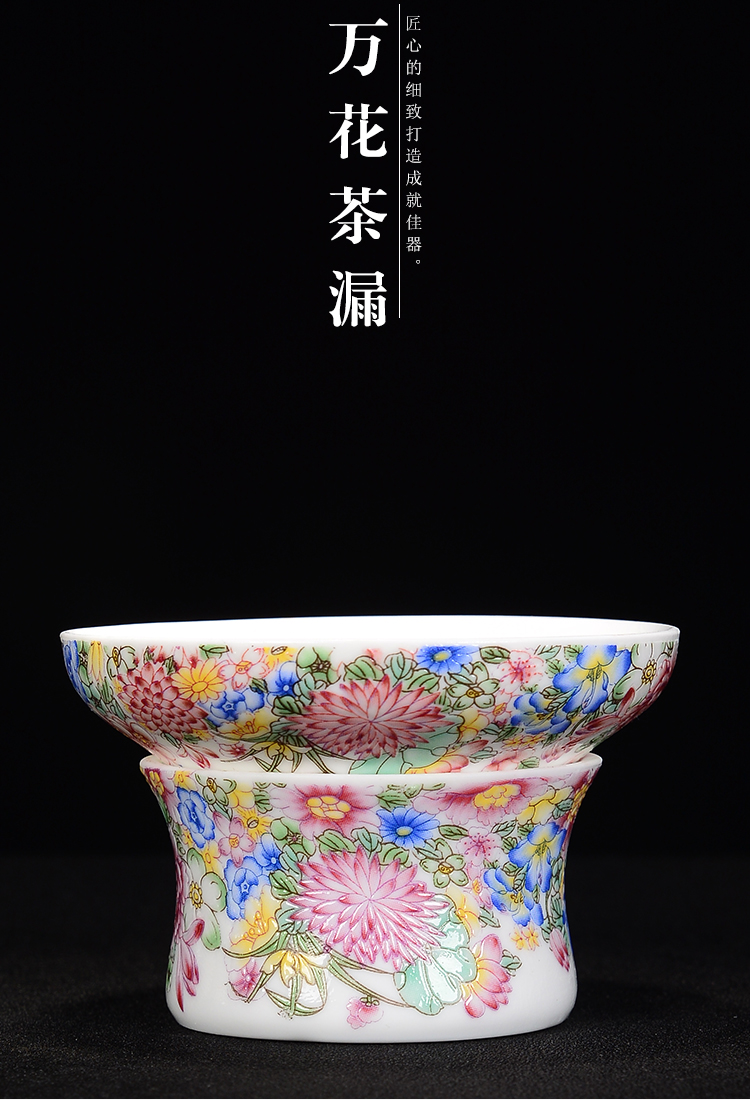 陶生活萬花茶漏陶瓷創意茶葉過濾網琺瑯彩扒花泡茶器茶濾茶具配件1入