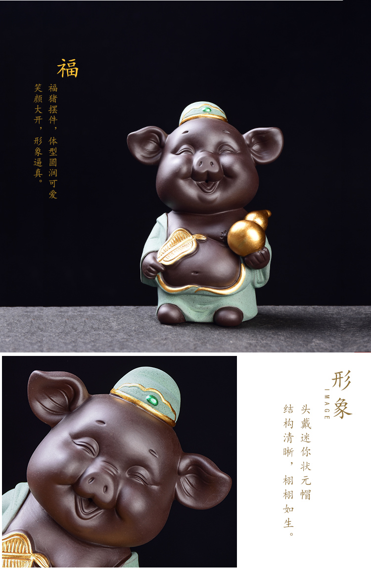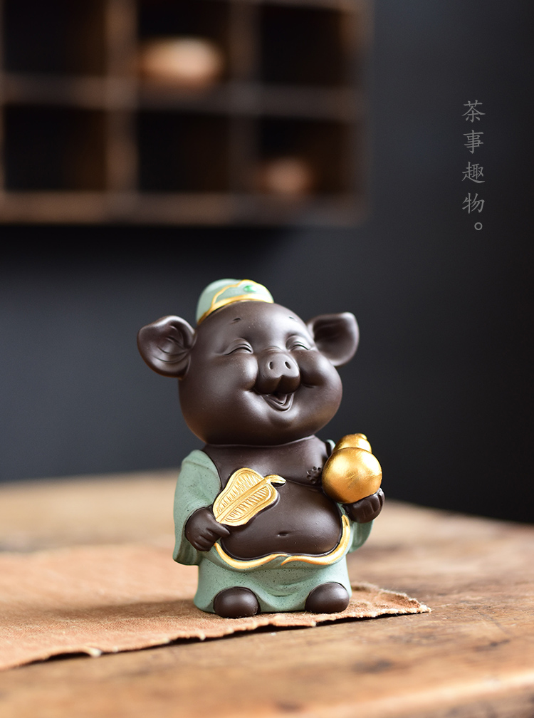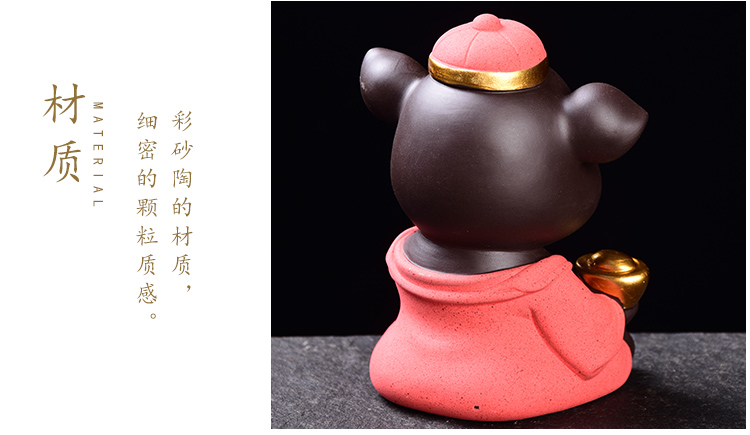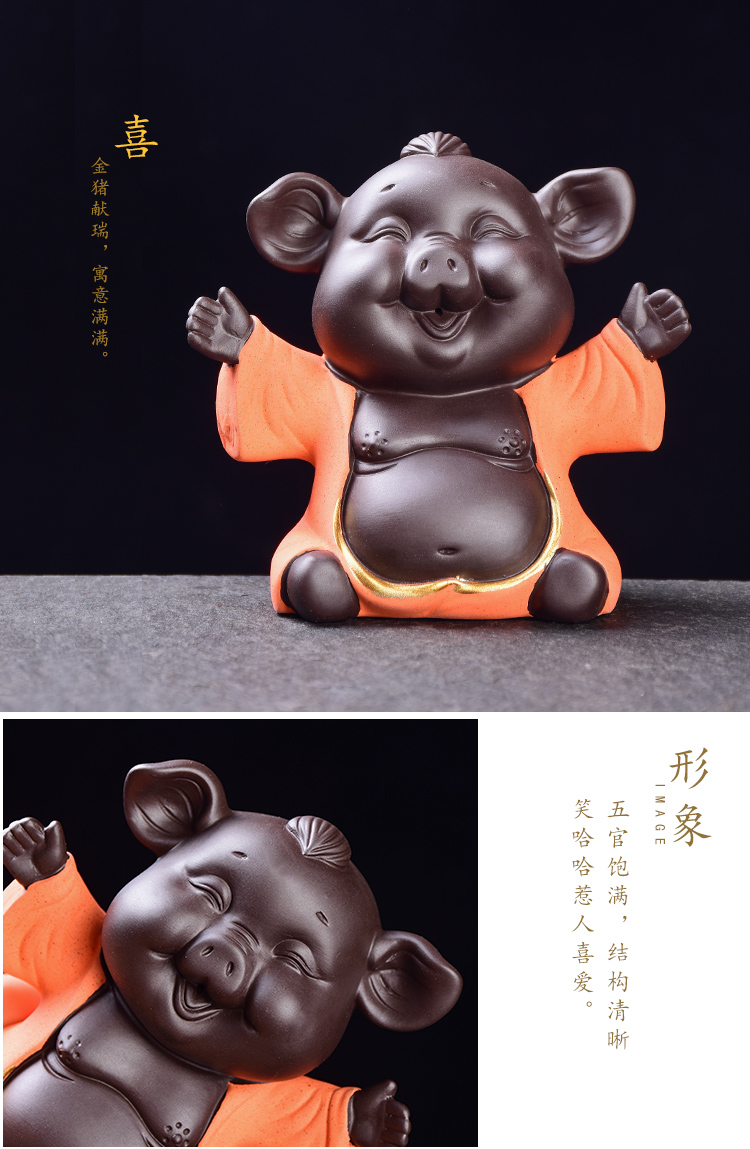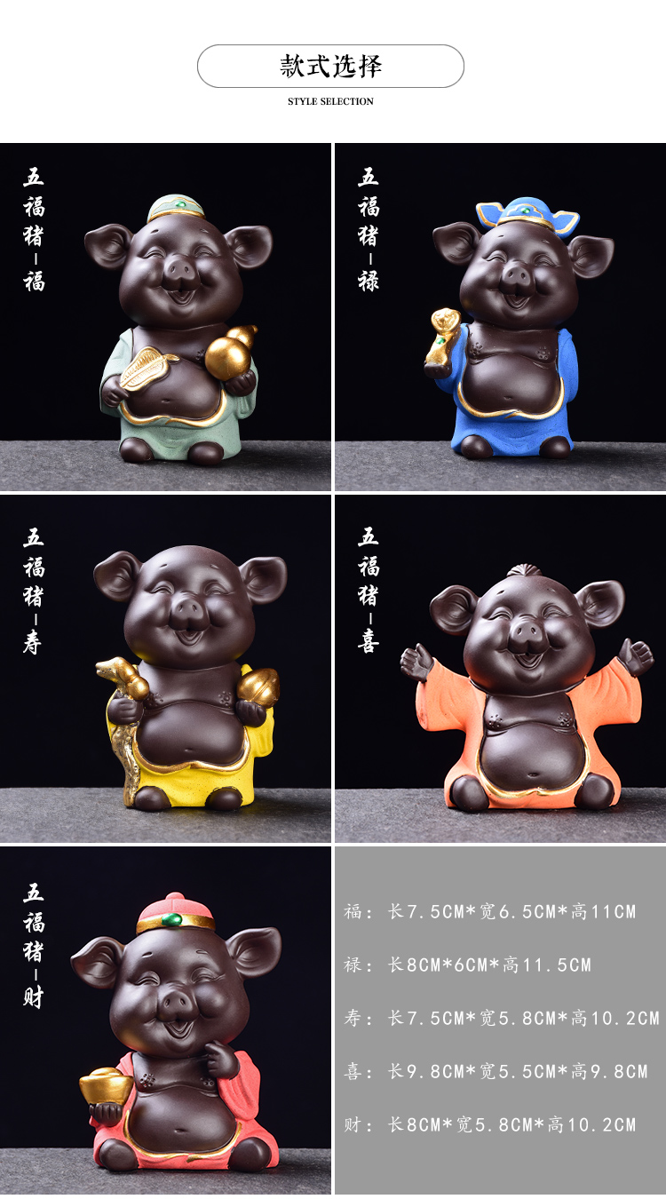 紫砂茶寵擺件精品可養五福豬創意家居茶具茶桌茶臺茶藝配件小擺件1入