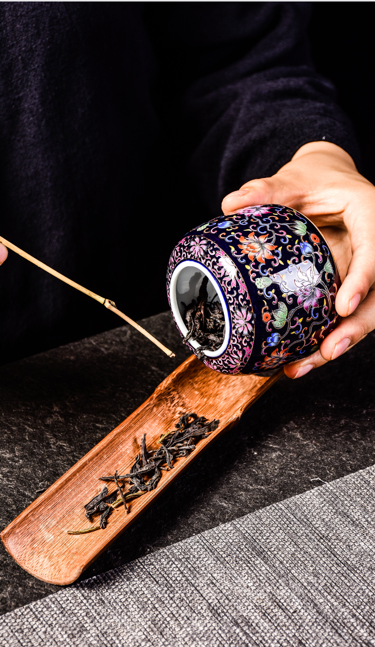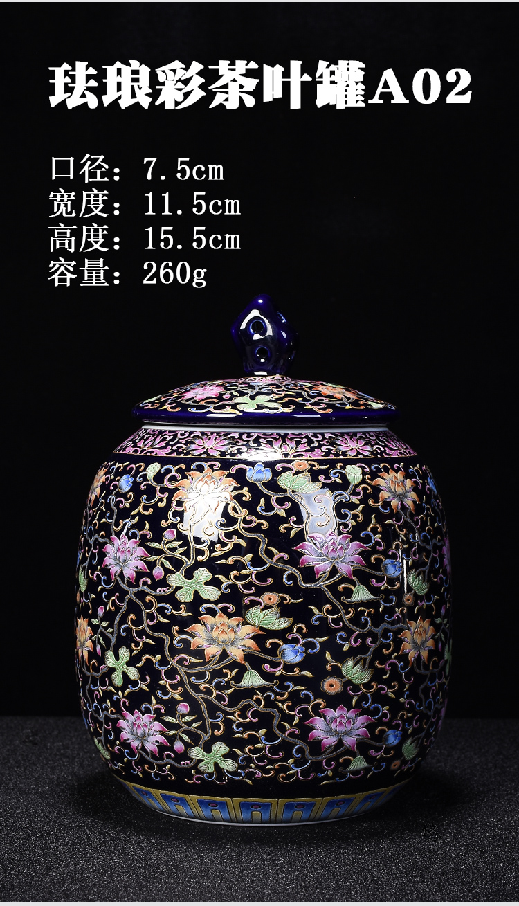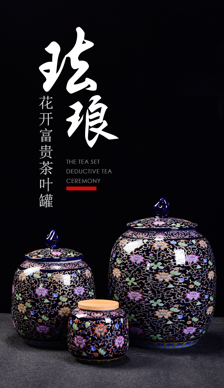 茶葉罐陶瓷琺瑯彩大號高檔一斤密封罐普洱創意家用儲物瓷罐半斤裝1入