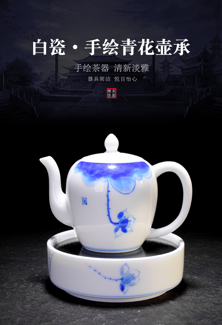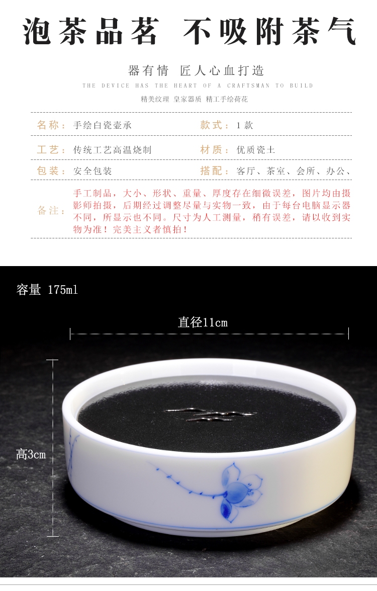 陶生活手繪青花瓷壺承養壺墊干泡盤陶瓷茶壺托干果碟茶席茶道搭配1入
