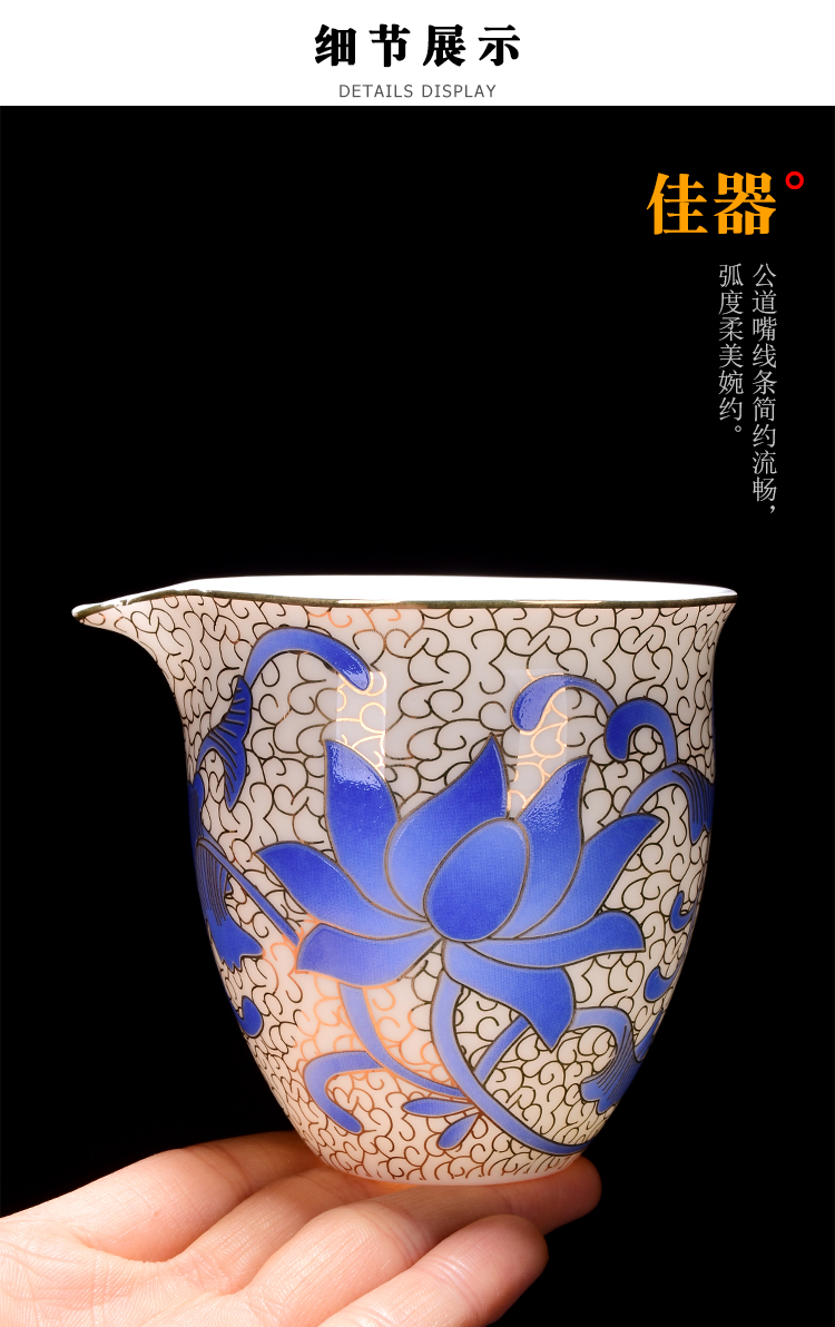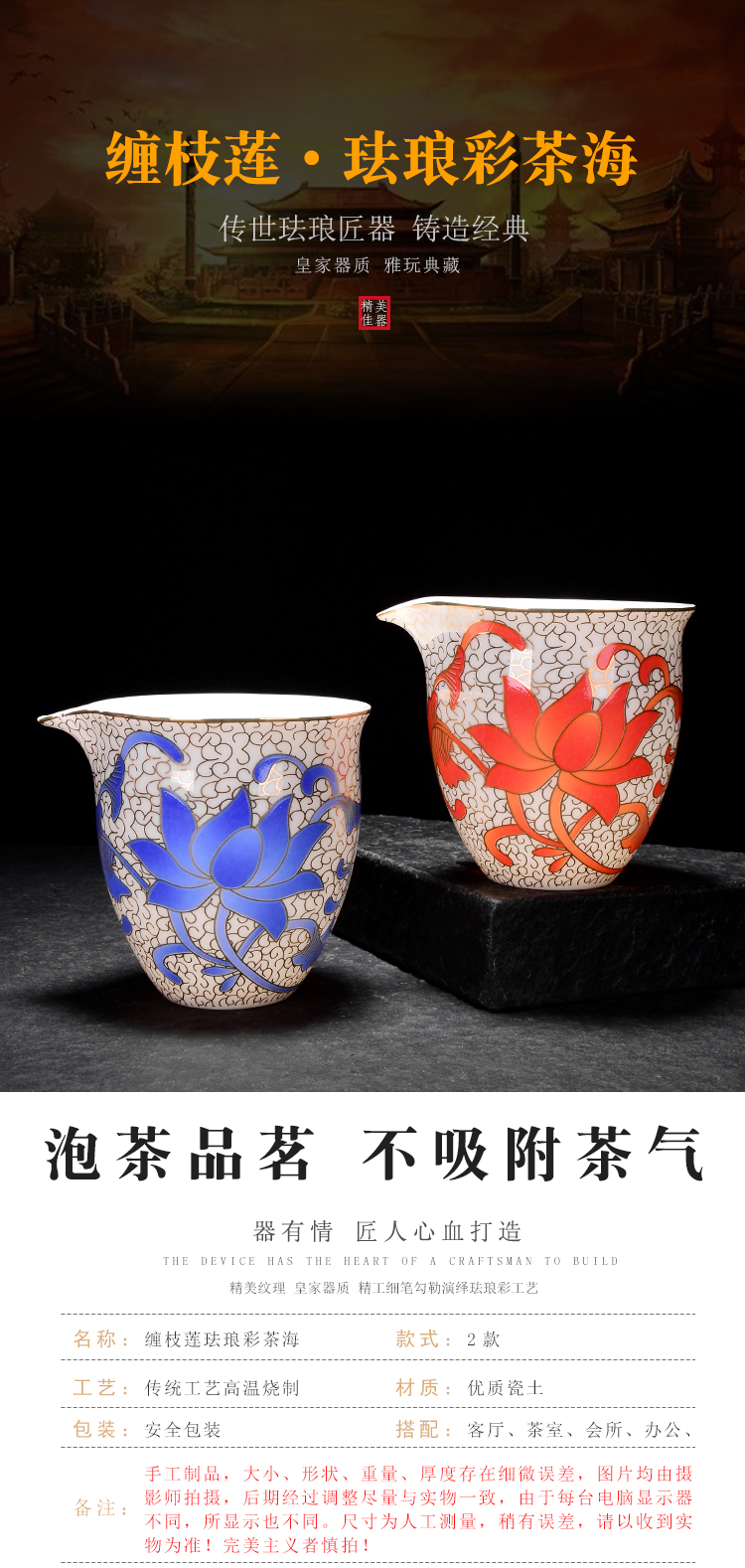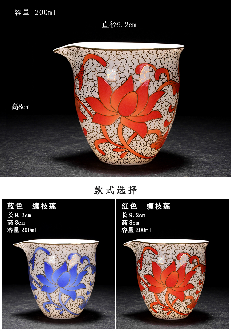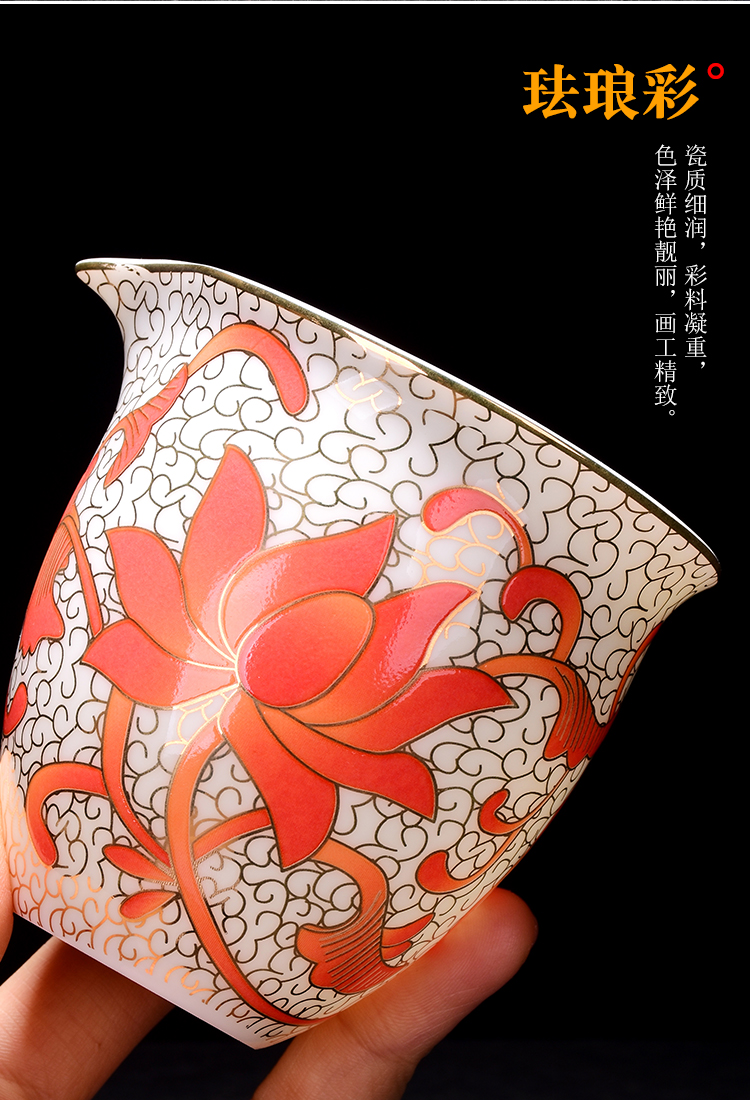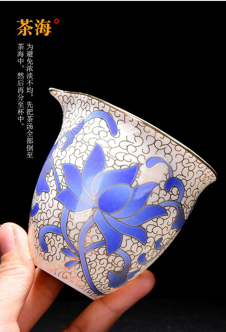 陶生活景德鎮陶瓷公道杯掐金絲琺瑯彩粉彩功夫茶具分茶器茶海茶杯1入