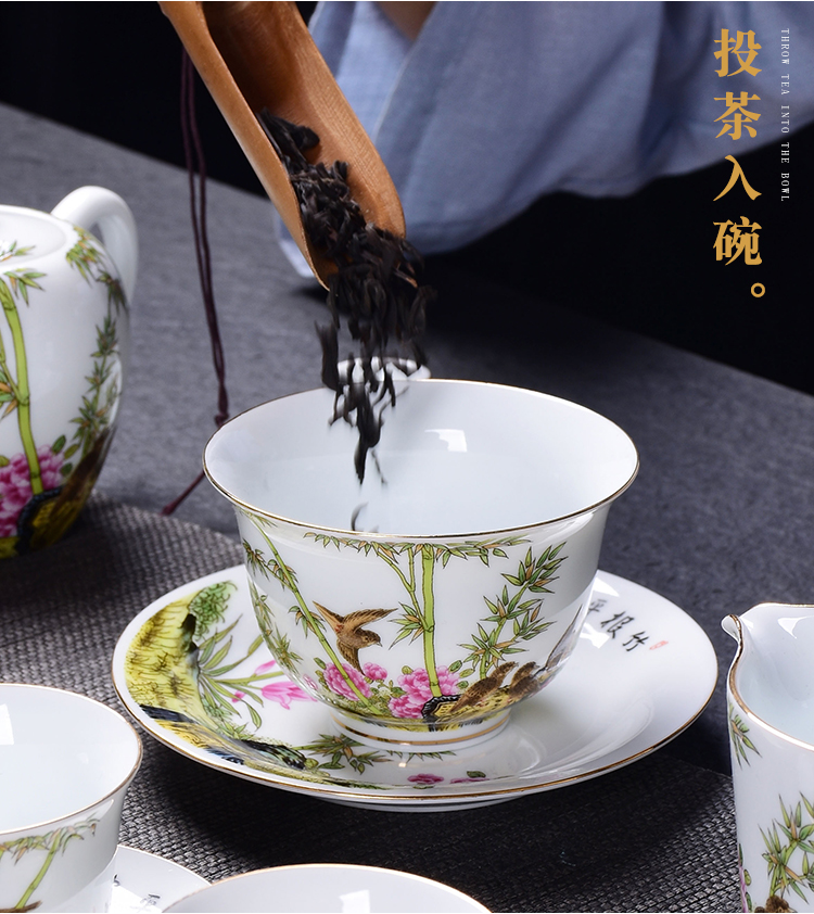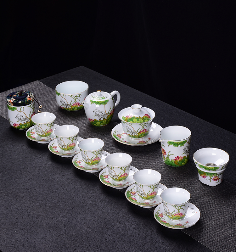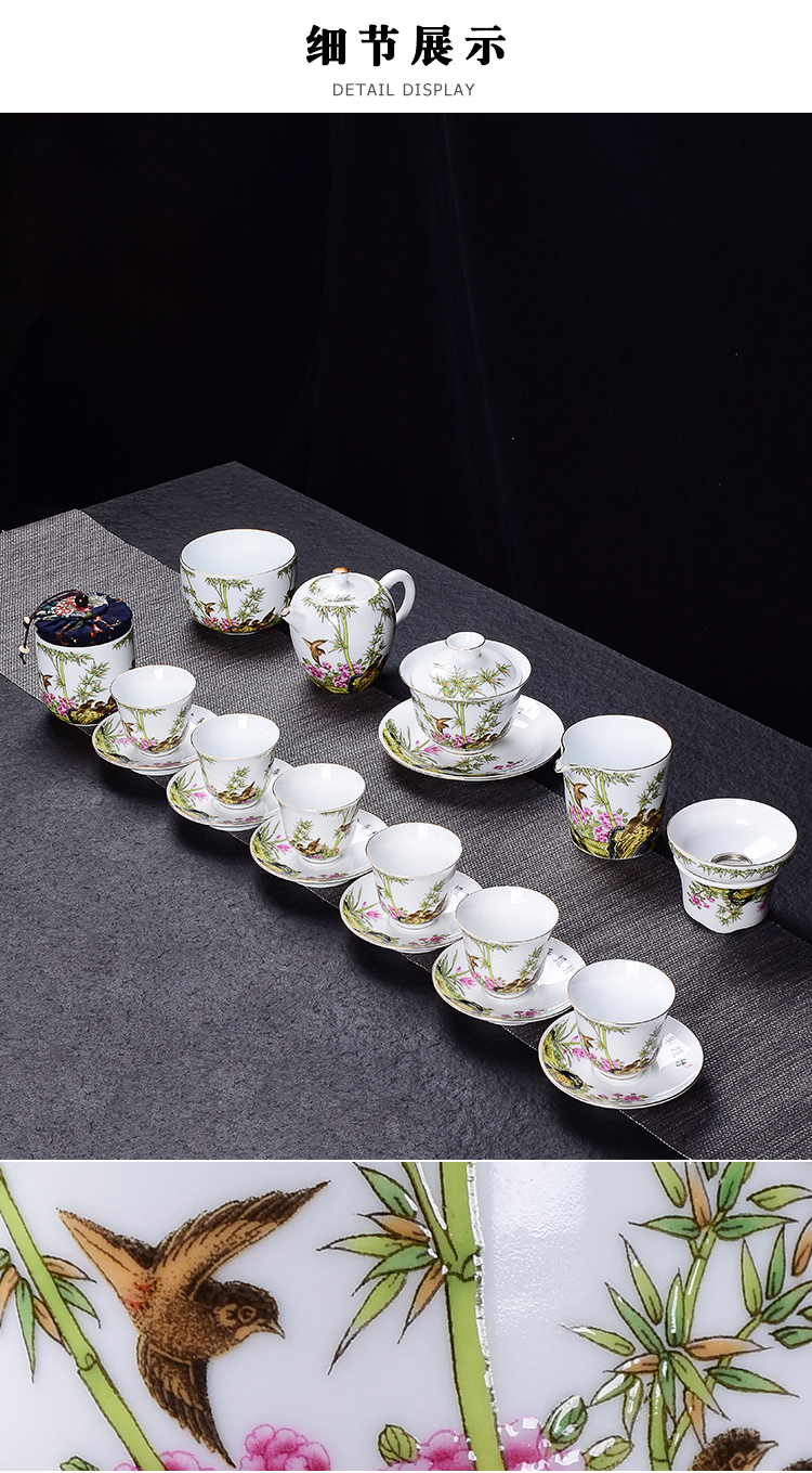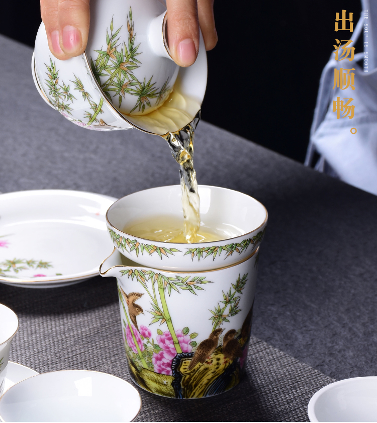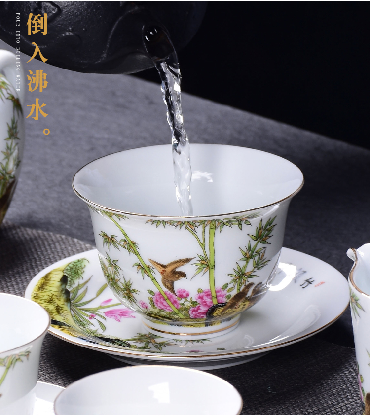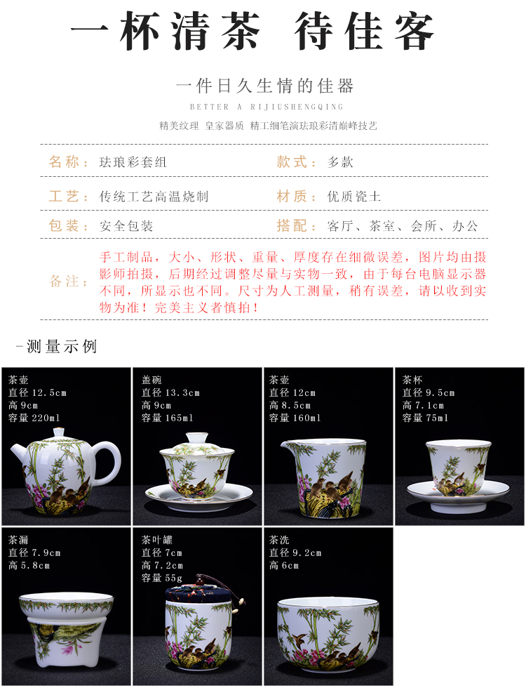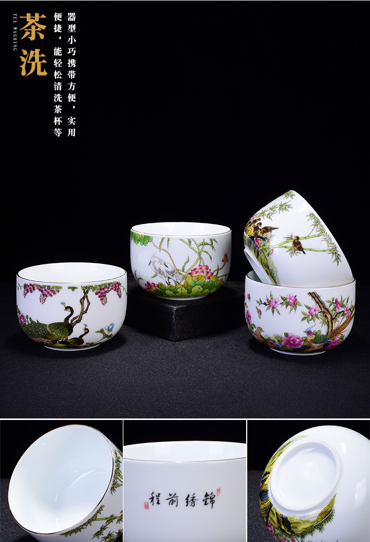 陶生活琺瑯彩功夫茶具套裝整套禮品蓋碗主人杯陶瓷小茶洗家用辦公1入