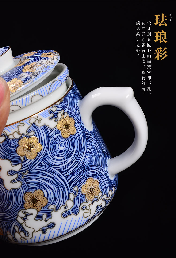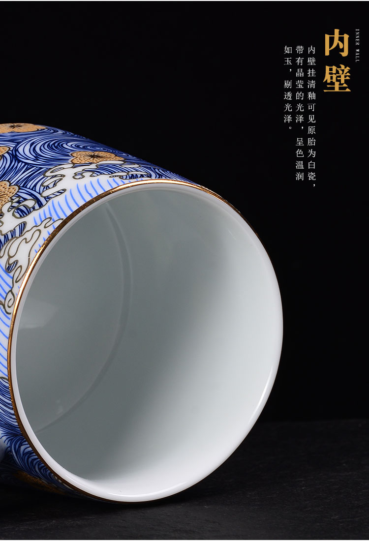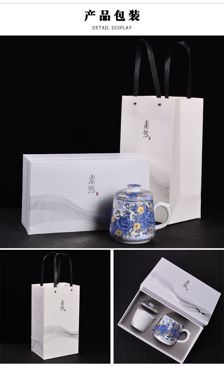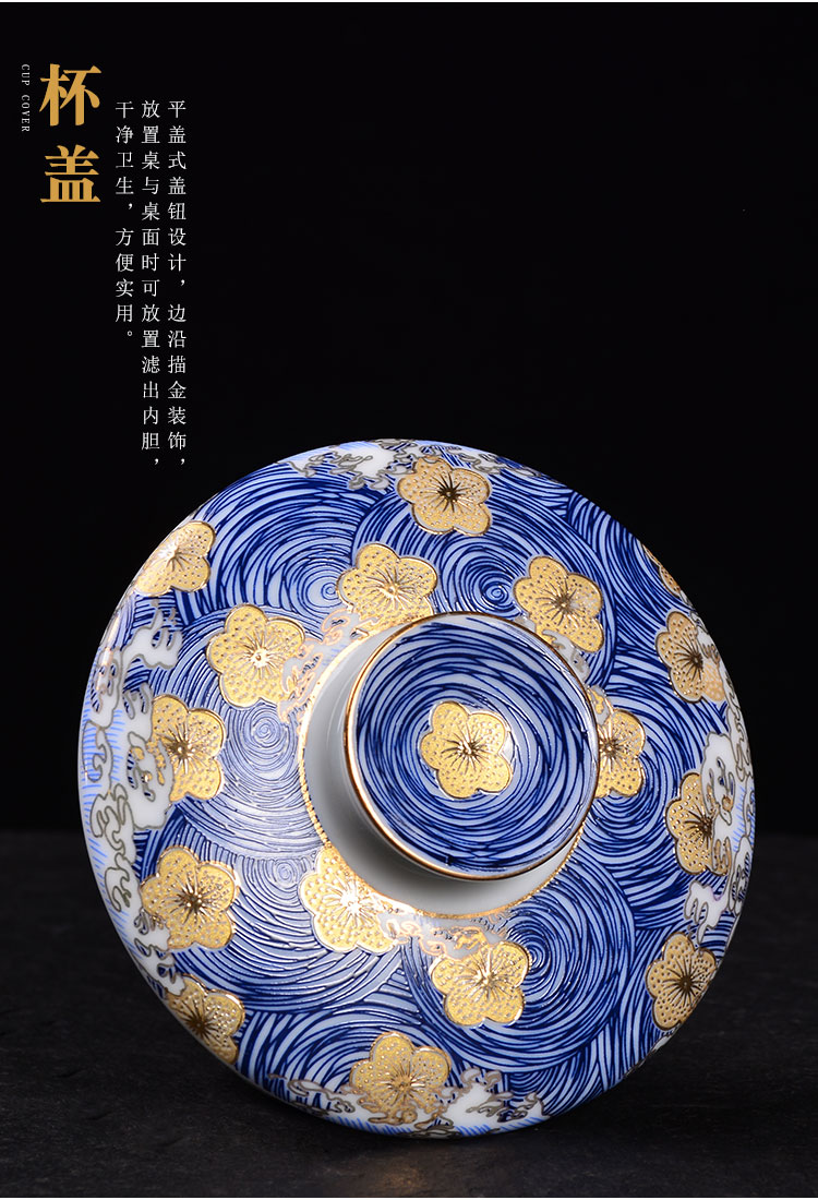 青花瓷泡茶杯陶瓷喝茶杯帶蓋過濾茶水分離杯辦公室杯子花茶濾茶杯1入