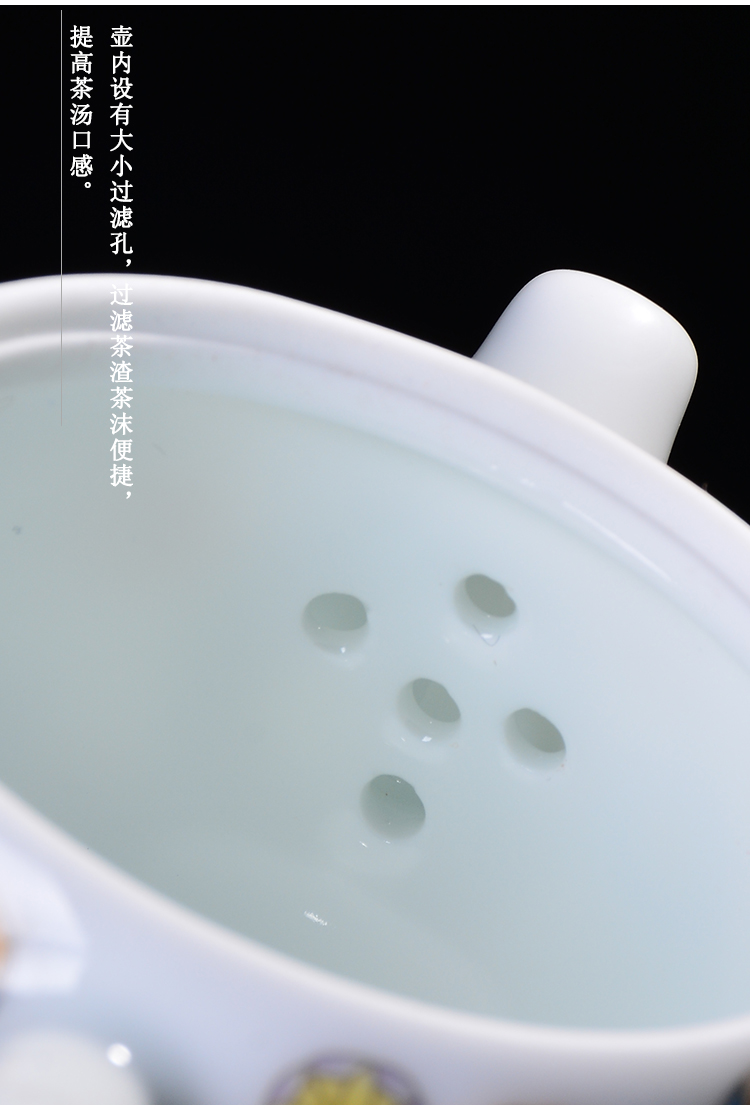 陶生活陶瓷茶壺小清新單壺功夫茶具景德鎮沖茶器青花瓷過濾泡茶壺1入