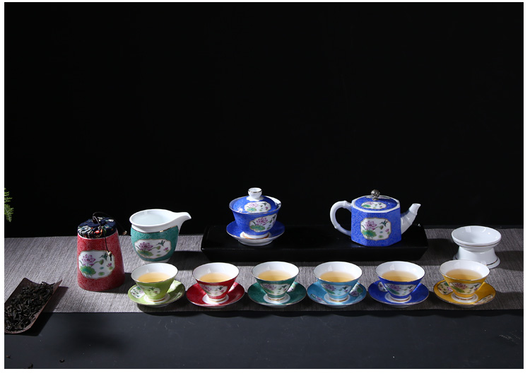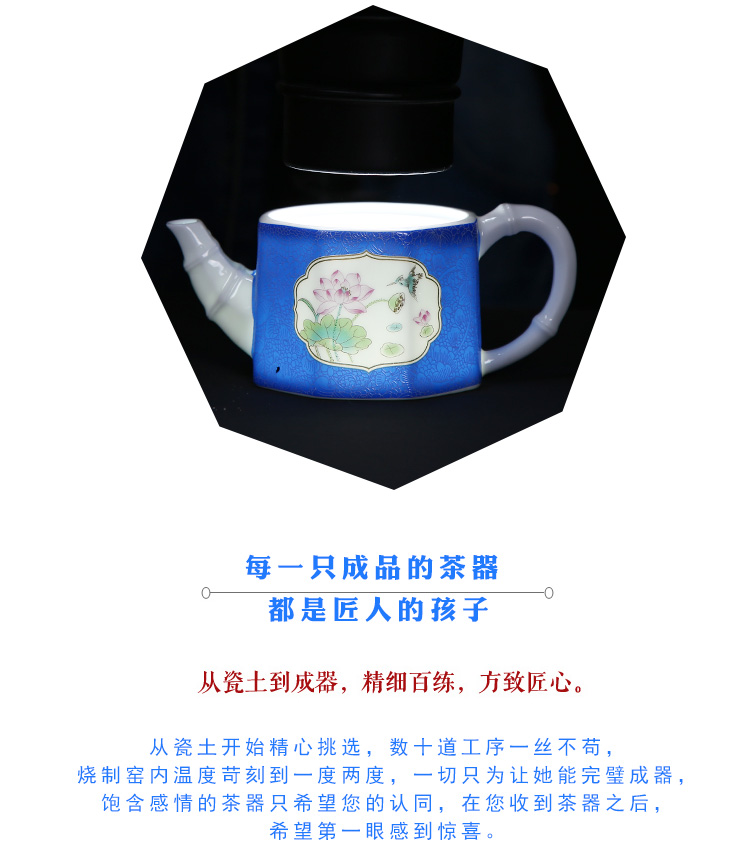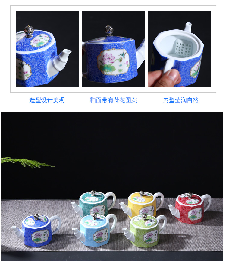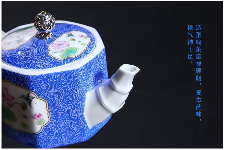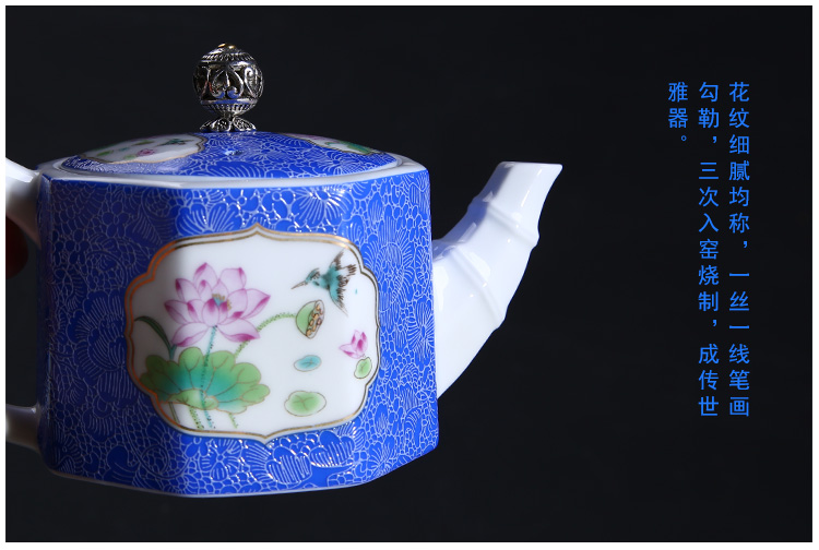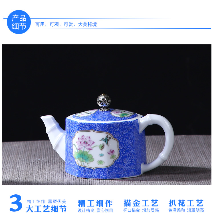 陶生活扒花茶壺手繪粉彩描金茶具茶杯品茗杯功夫茶具青花陶瓷茶壺1入