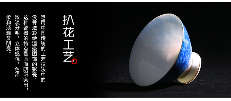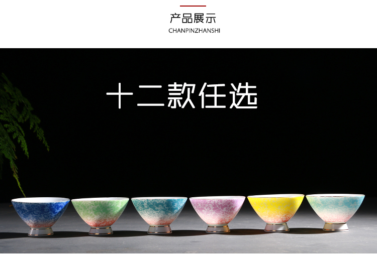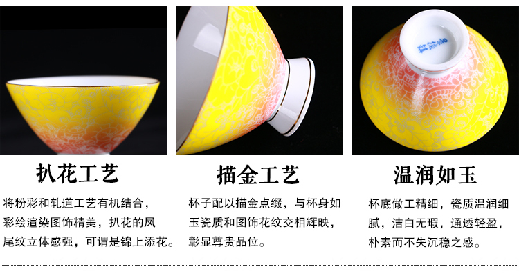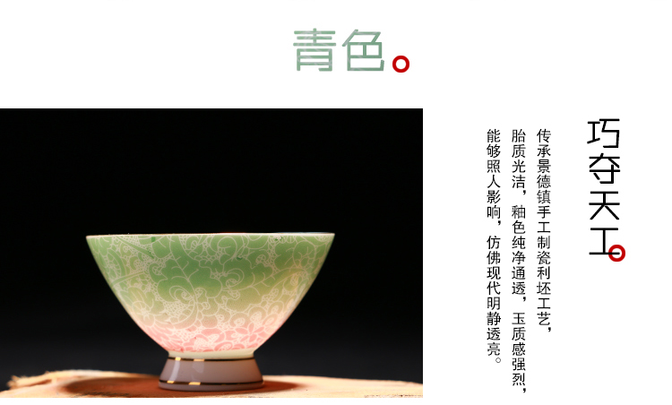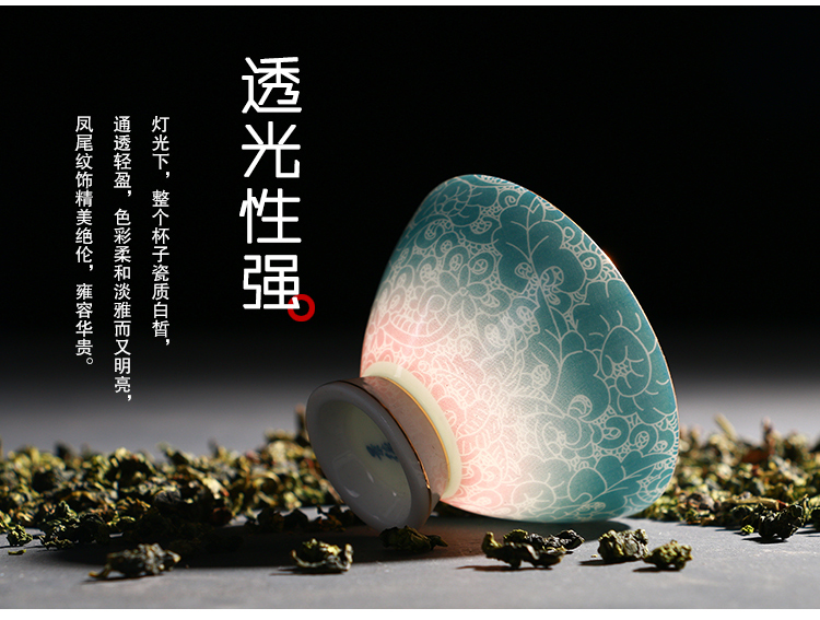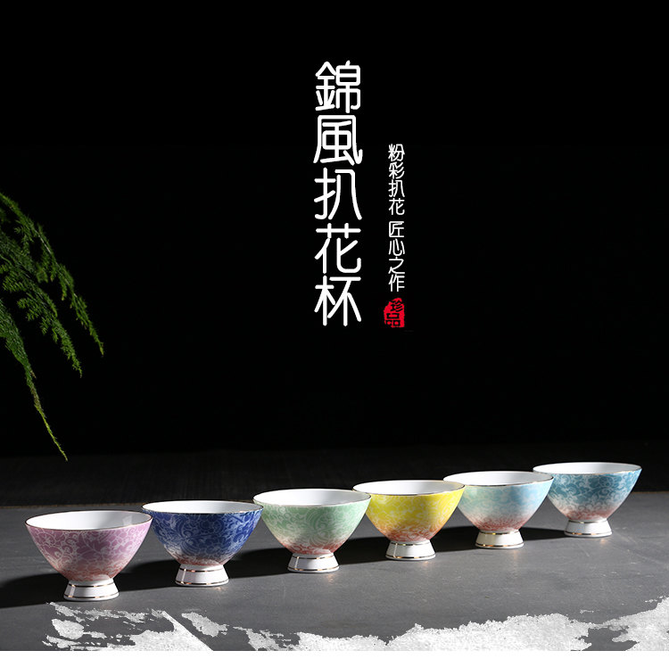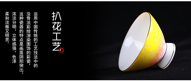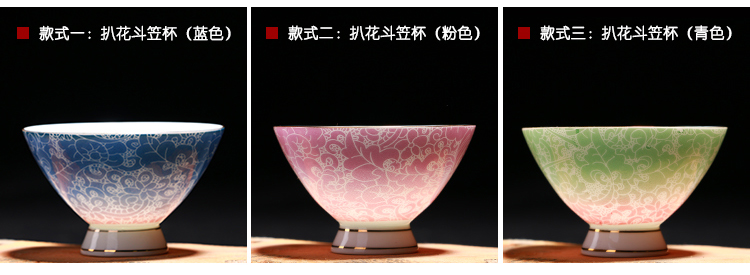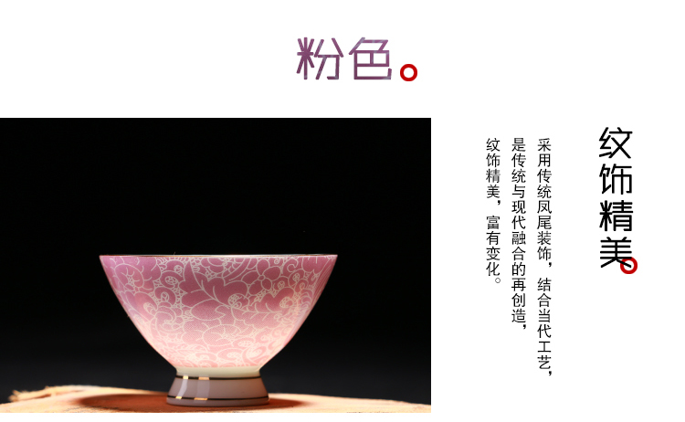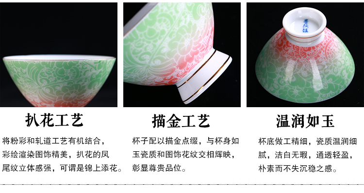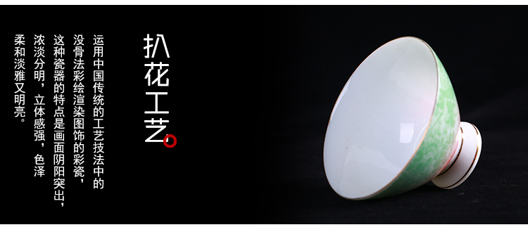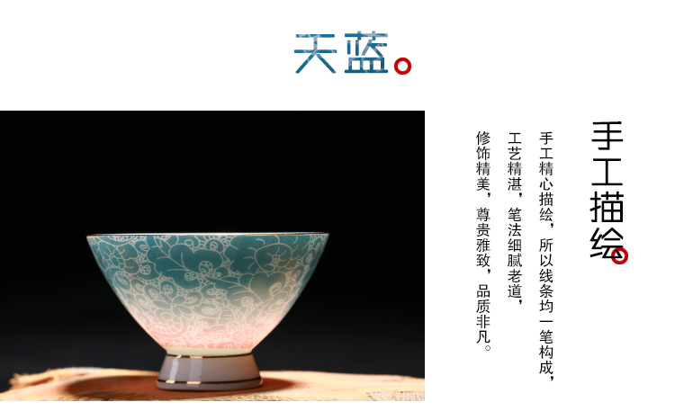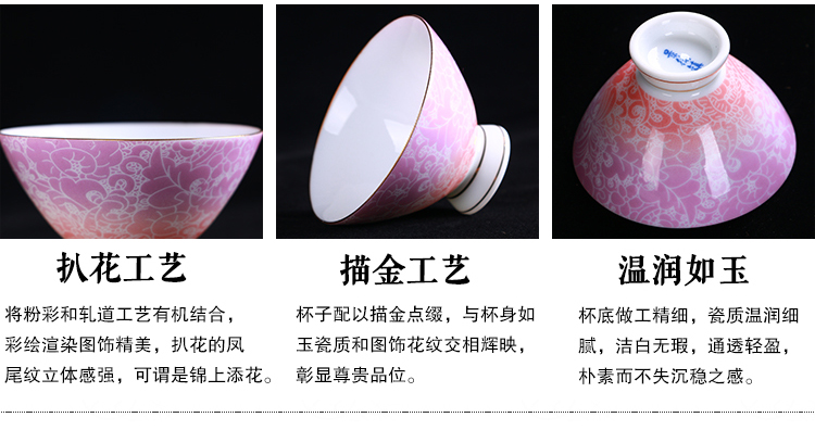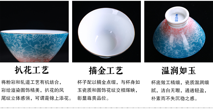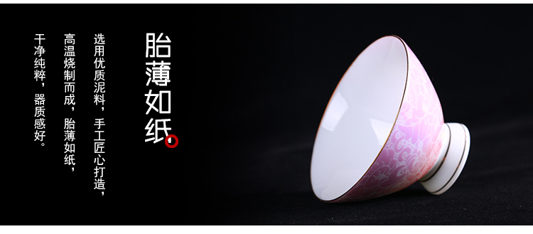 陶生活茶具陶瓷茶杯茶碗粉彩茶盞品茗杯描金手工扒花功夫主人單杯1入