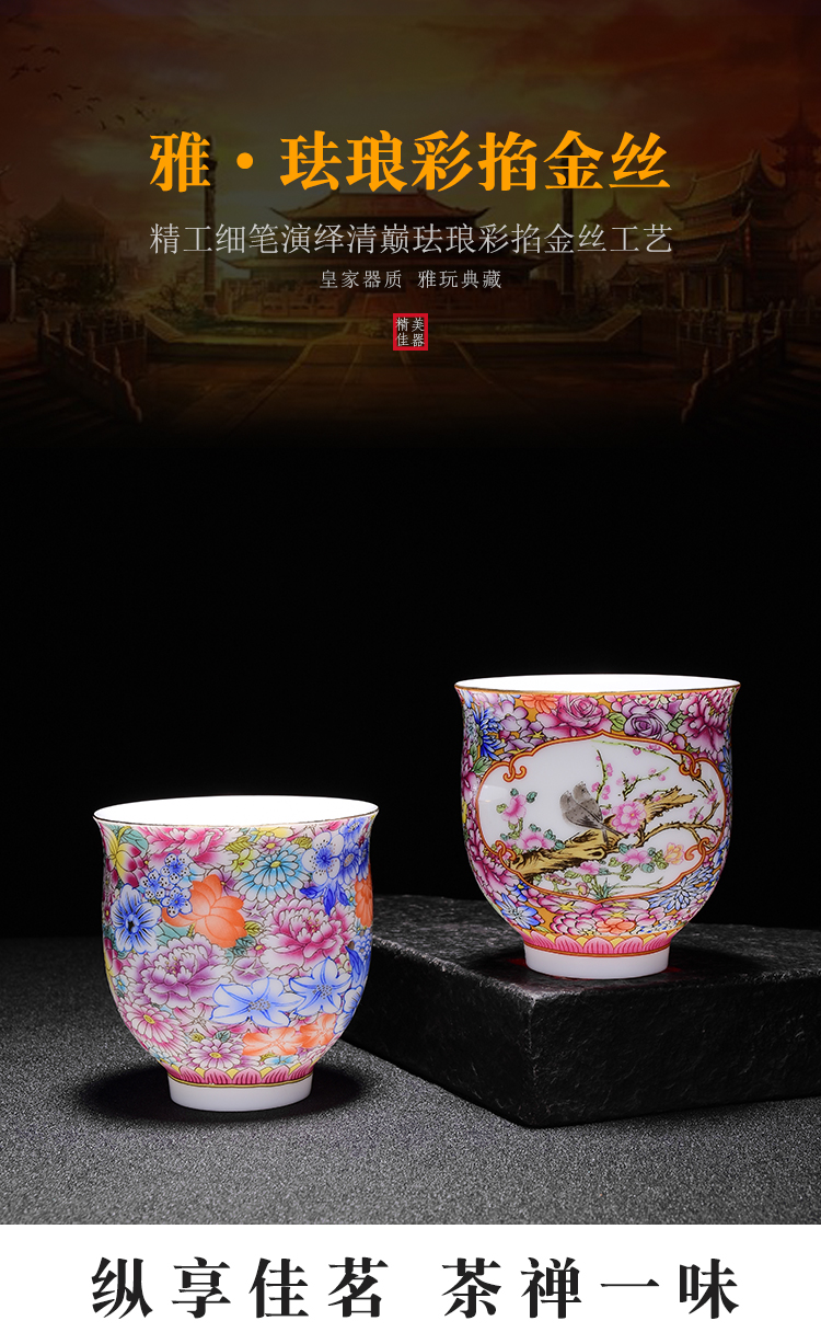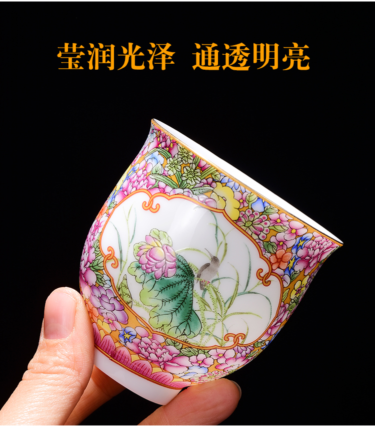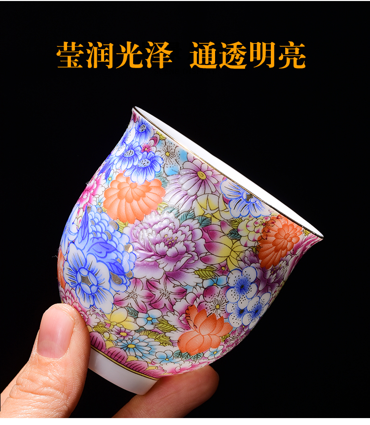 陶生活繁花似錦琺瑯彩功夫茶具品茗杯單杯日式家用主人杯大號茶碗1入