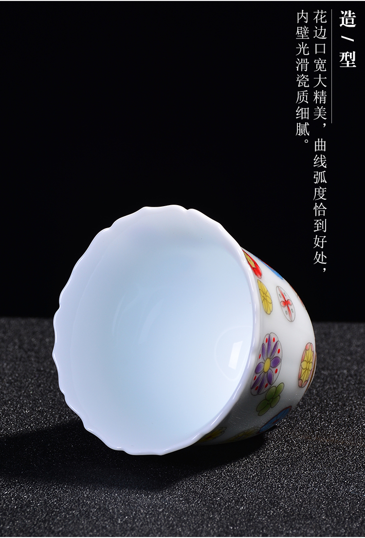 陶生活 景德鎮茶具陶瓷品茗杯滿彩青花主人杯單杯功夫 小清新茶杯1入