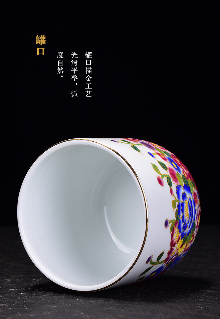 琺瑯彩萬花掐絲茶葉罐手繪描金百花不露地茶罐景德鎮陶瓷茶倉擺件1入