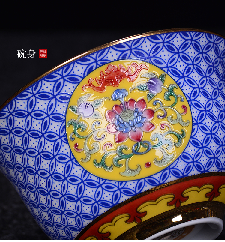 陶生活蓋碗茶杯大號功夫茶具三才泡茶景德鎮陶瓷琺瑯彩茶碗三炮臺1入