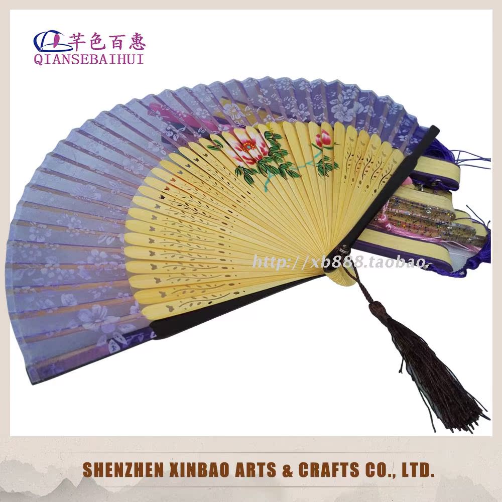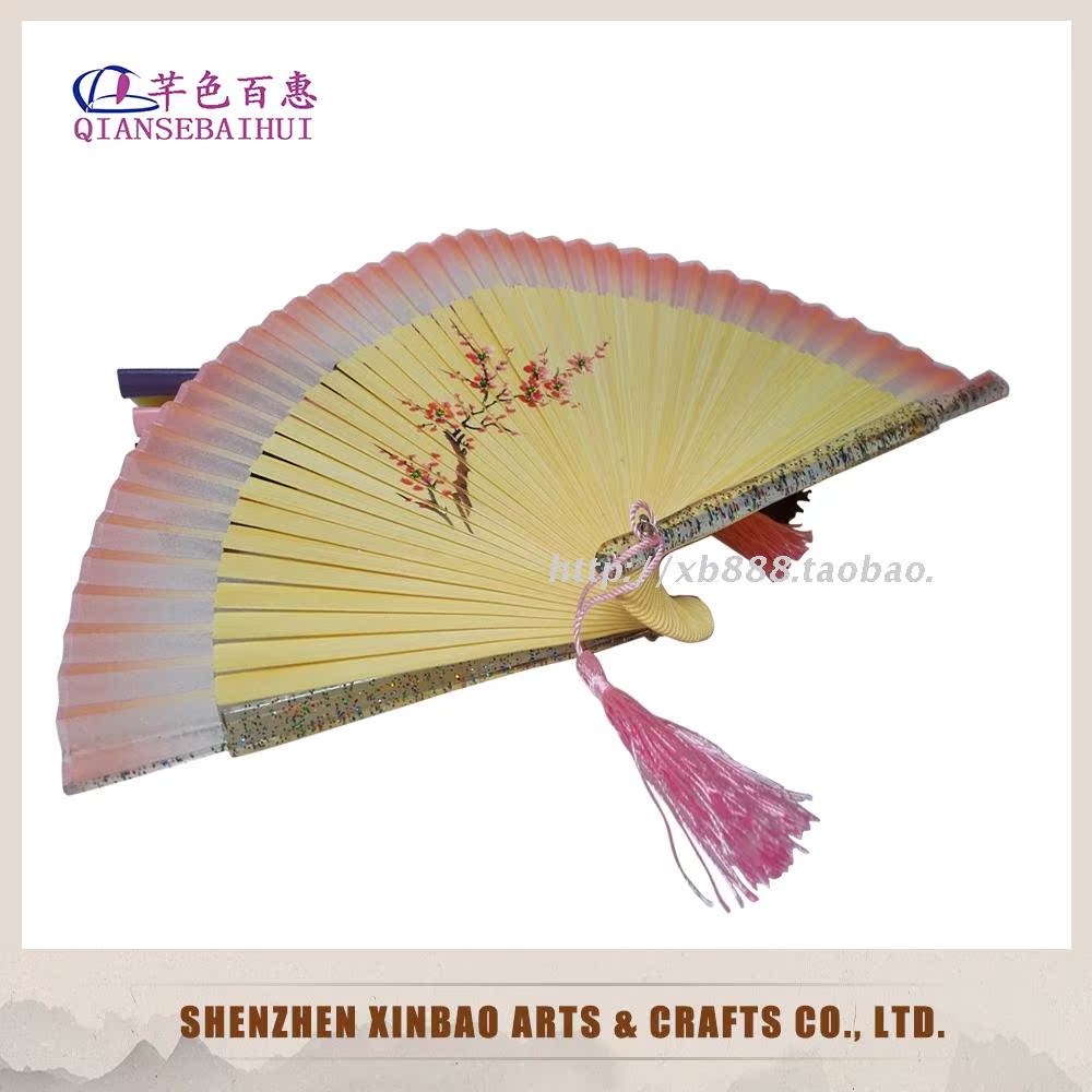 19cm精品女扇蝴蝶扇骨中國風竹扇民間手工藝品手繪折扇1入