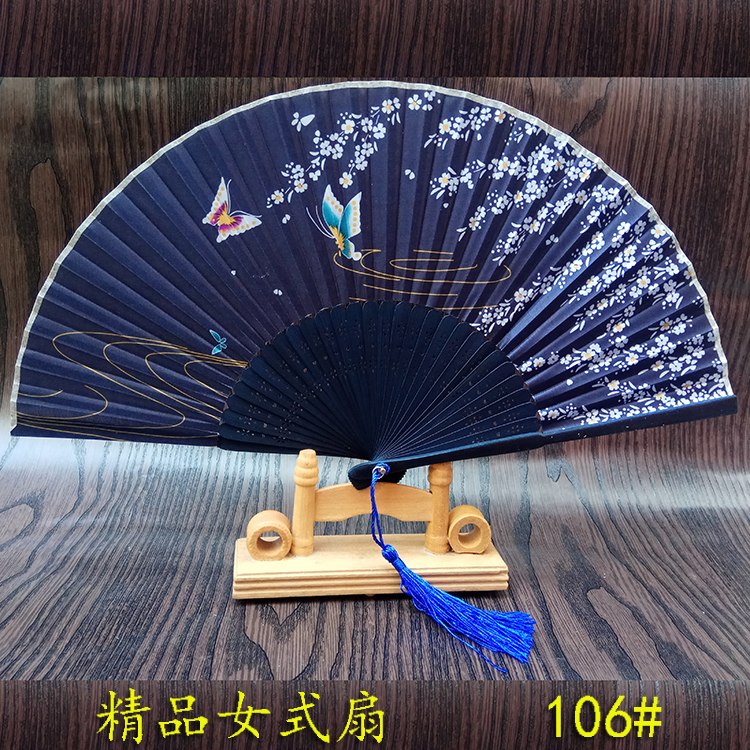 高檔真絲扇工藝禮品扇夏季禮品女扇折扇蝴蝶扇多款1入