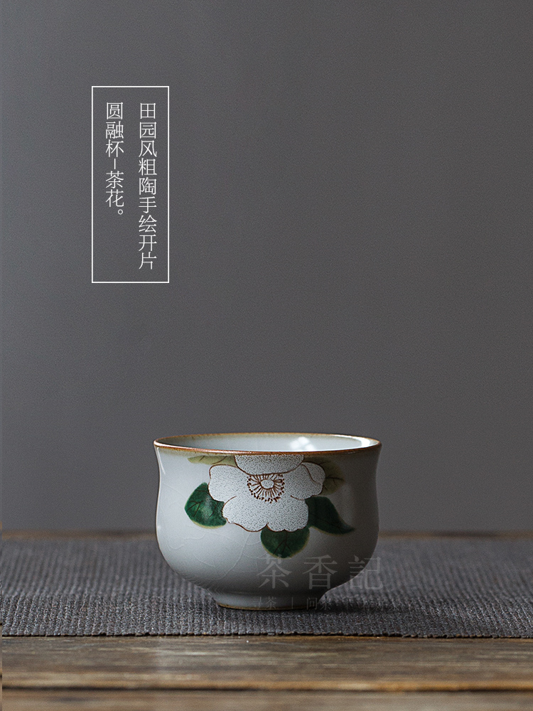 開片圓融杯 粗陶 手繪 田園風 茶杯 個人杯 品茗杯1入