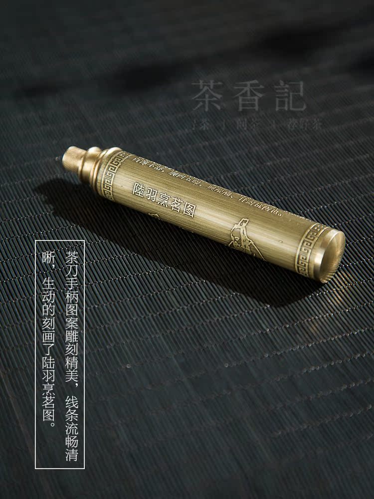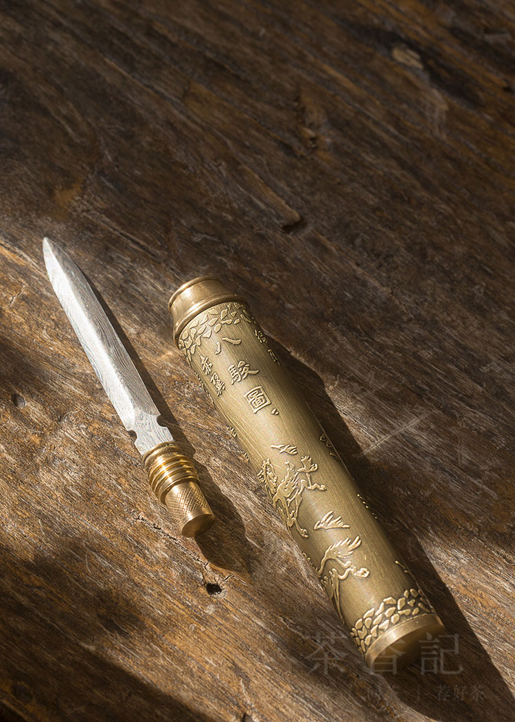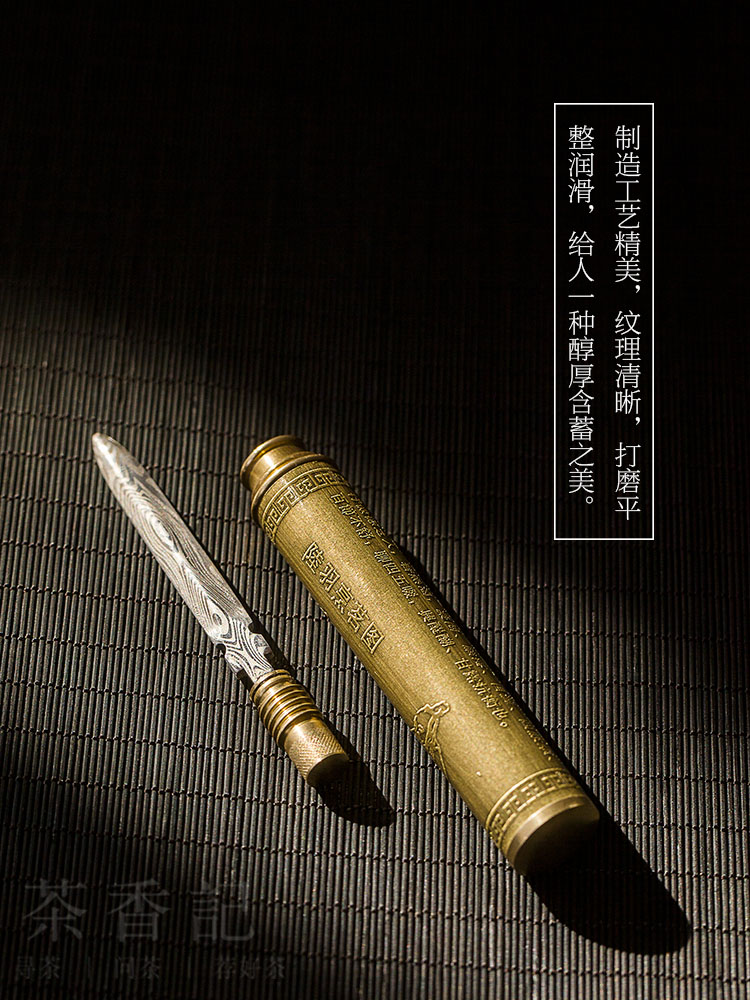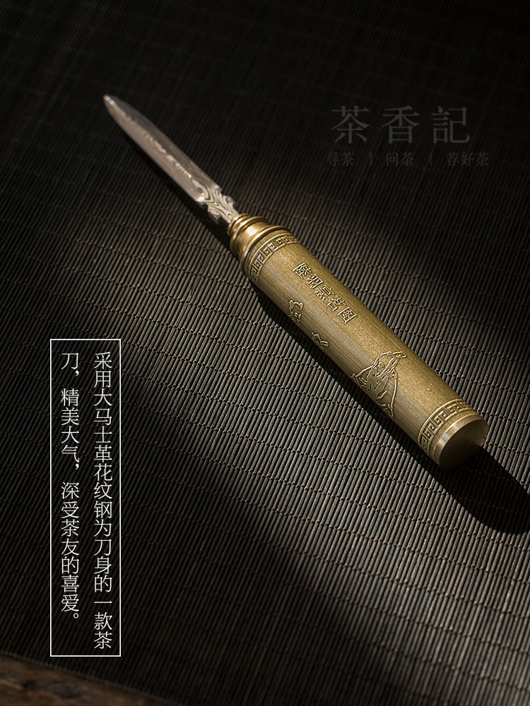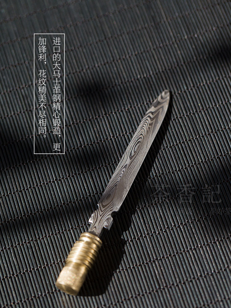 黃銅大馬士革鋼茶刀 普洱茶刀 花紋鋼 茶刀1入