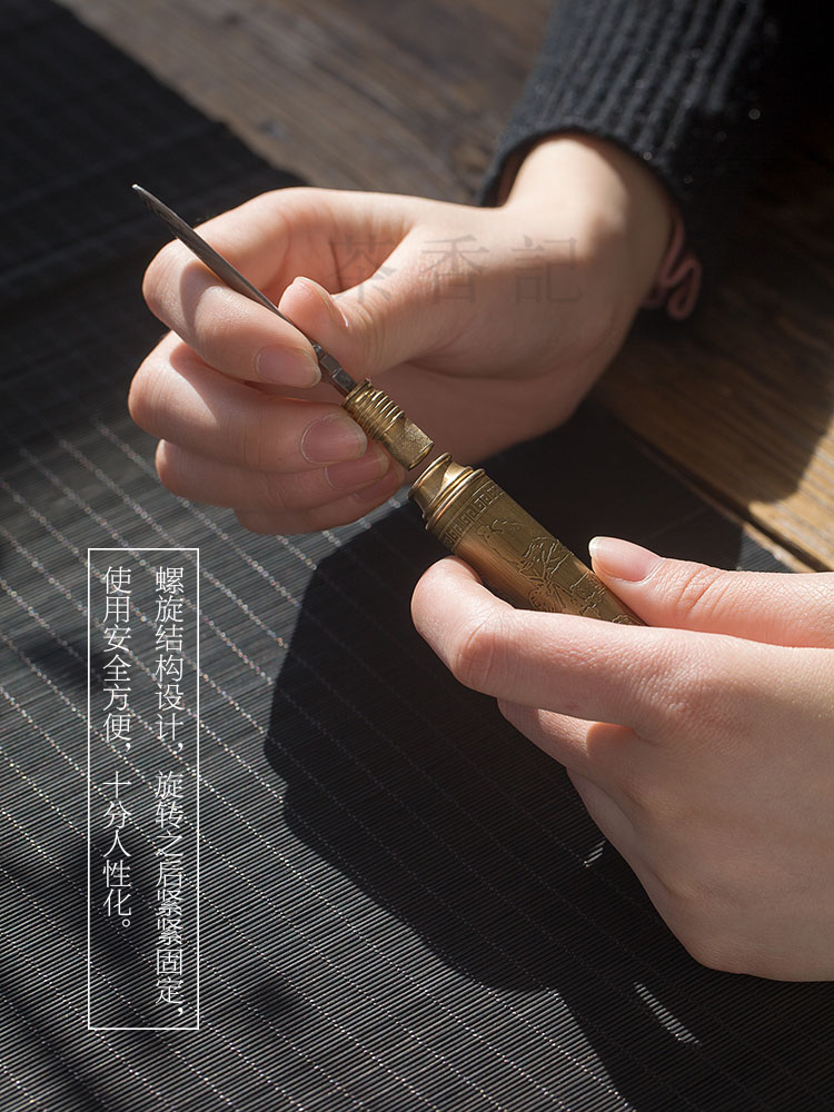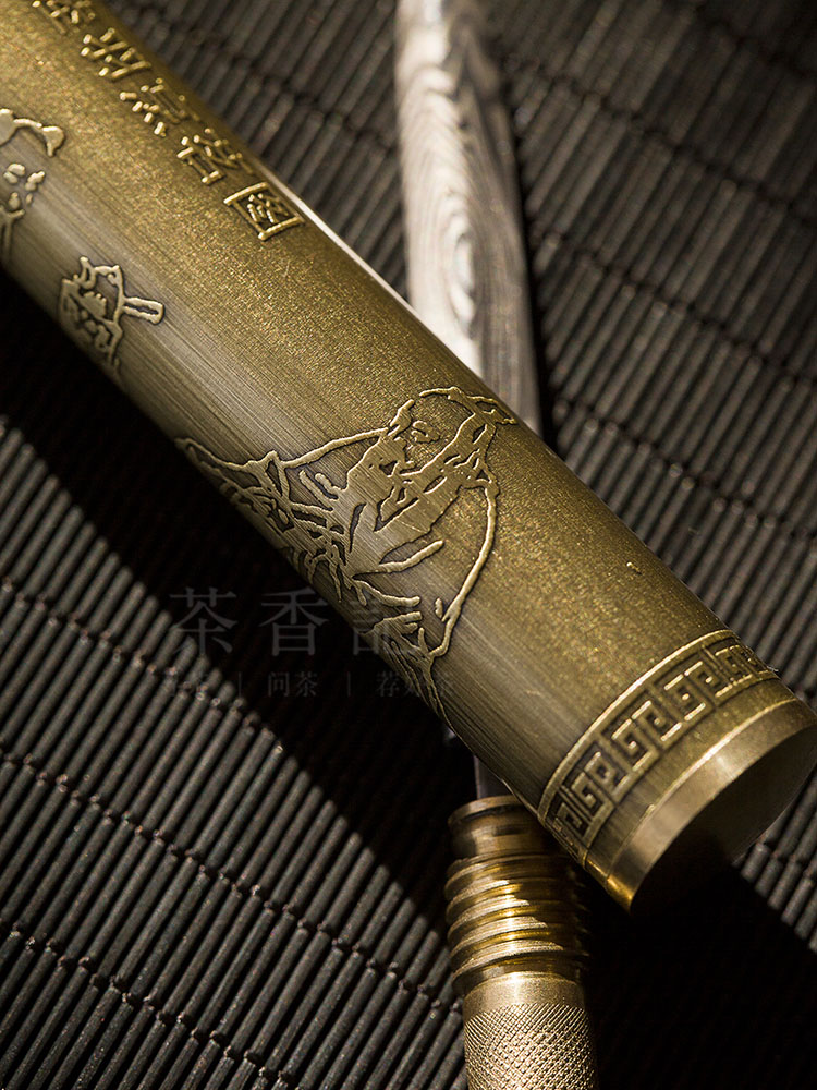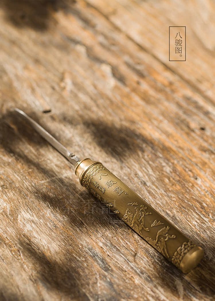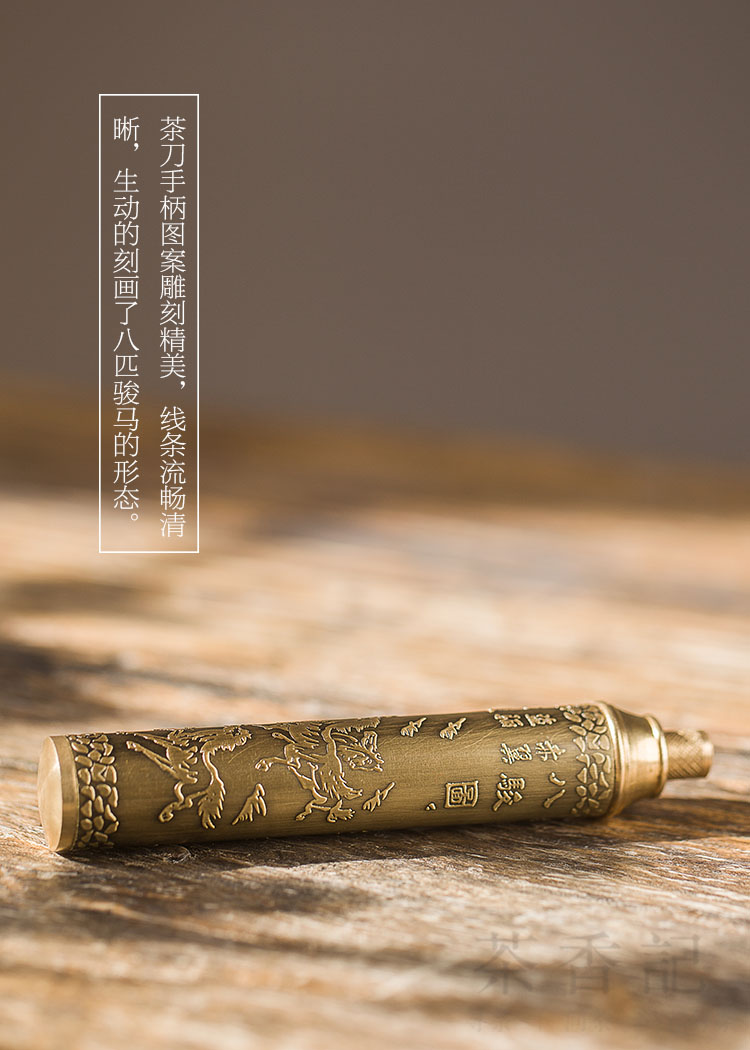 黃銅大馬士革鋼茶刀 普洱茶刀 花紋鋼 茶刀1入