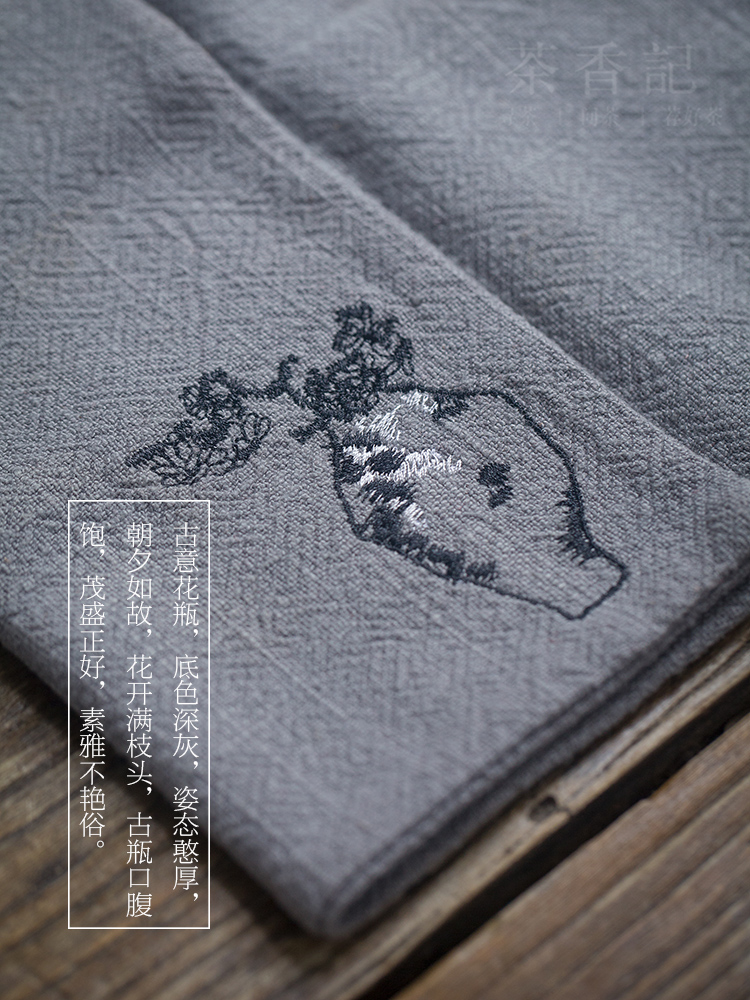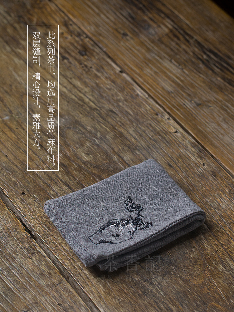 雙層苧麻茶巾 高檔定制刺繡潔方 防滑墊 功夫茶具1入
