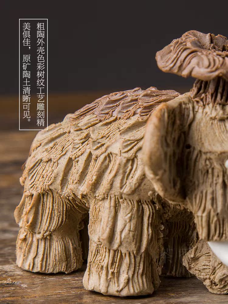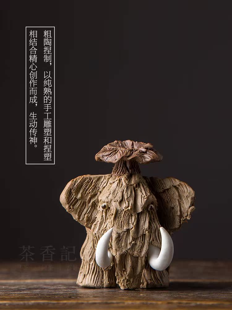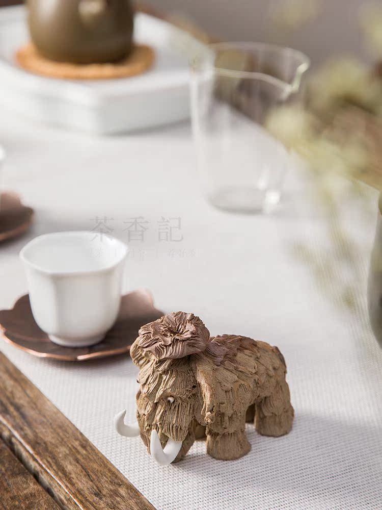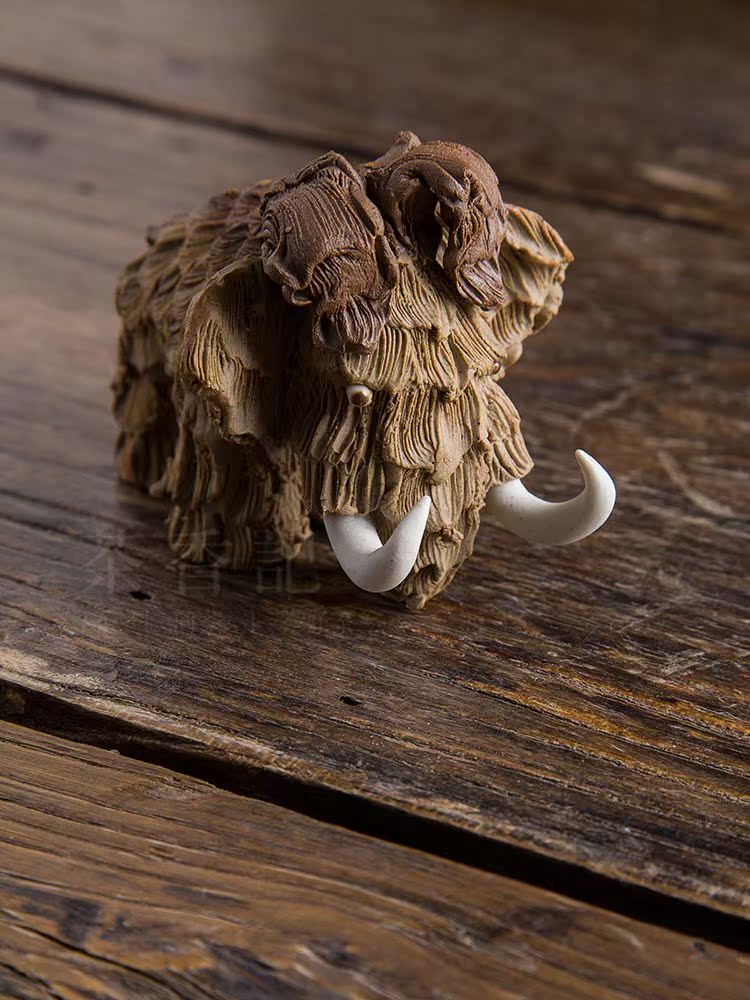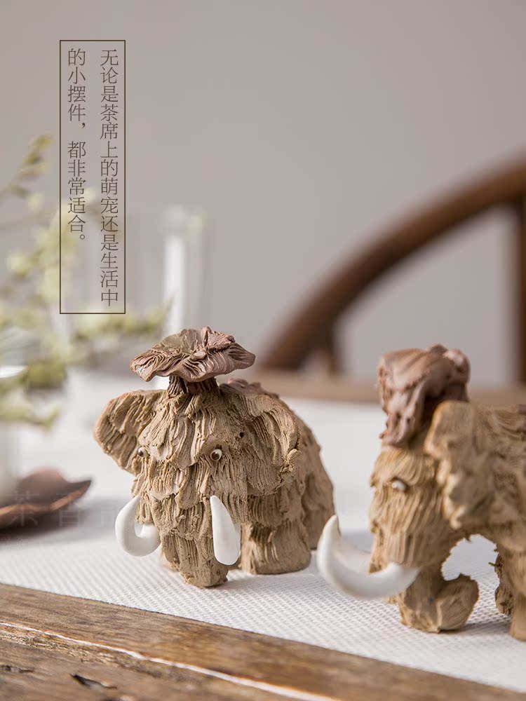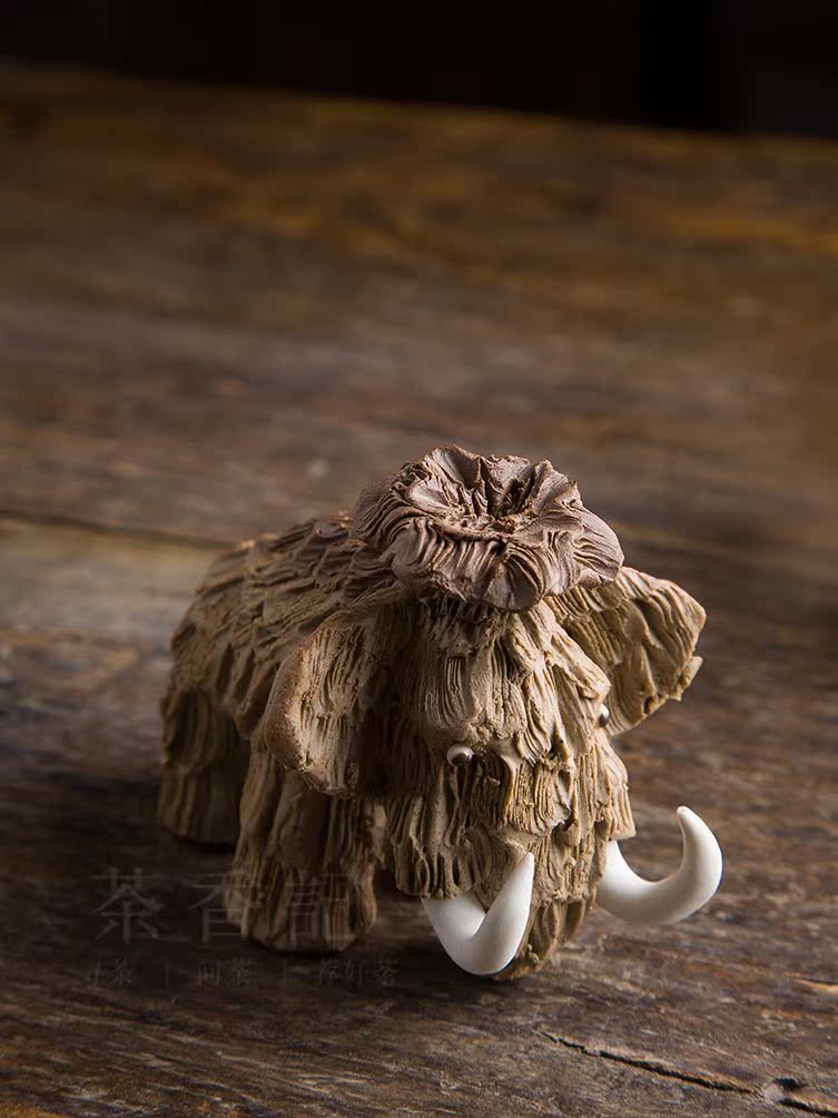 消失的猛?象 陶泥手工肌理紋 茶寵擺件 茶寵功夫茶具1入