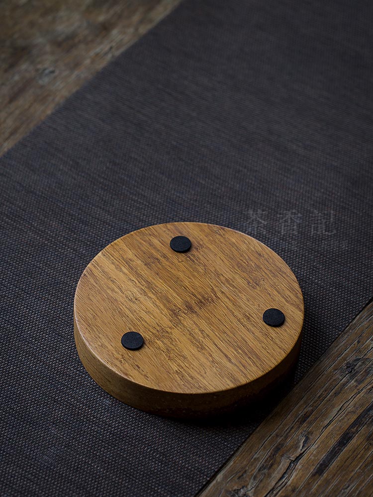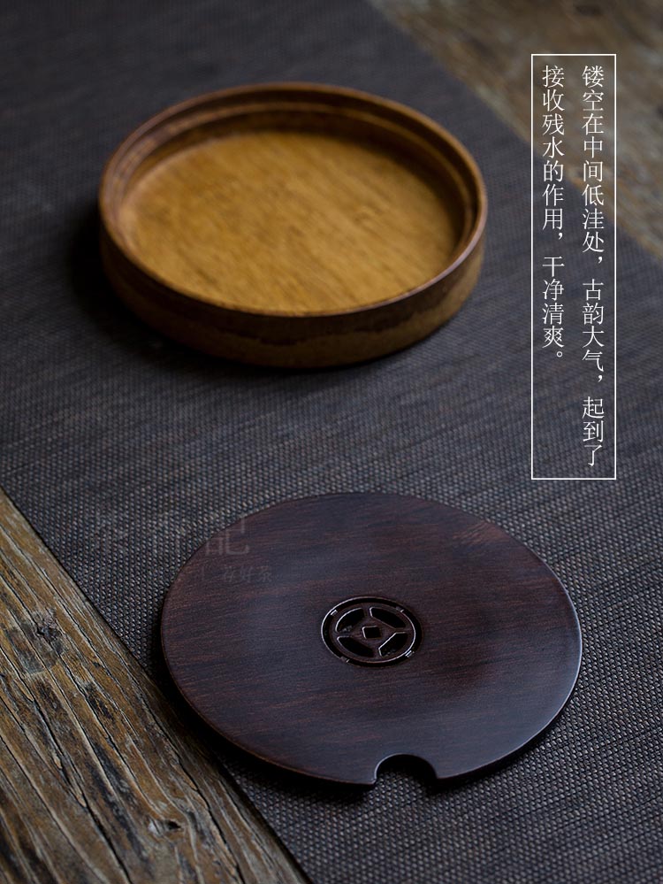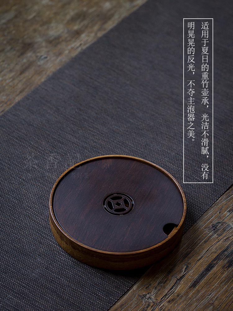 重竹干泡臺 圓形盛水壺承 祥云 遠山 古錢 壺承 干泡盤1入