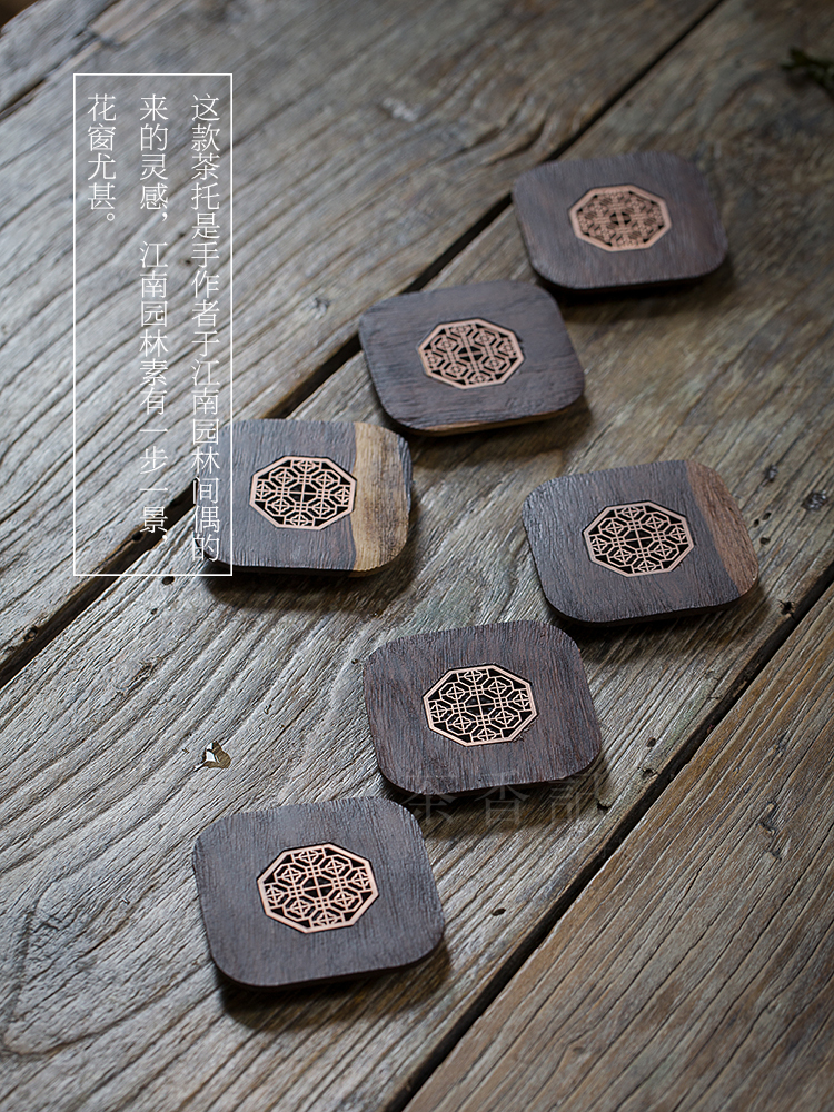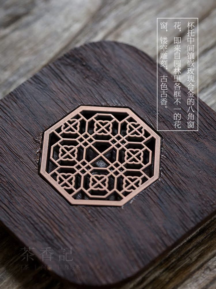 黑檀木八角窗花杯墊 茶杯托 茶杯墊 茶盞托 功夫茶具1入