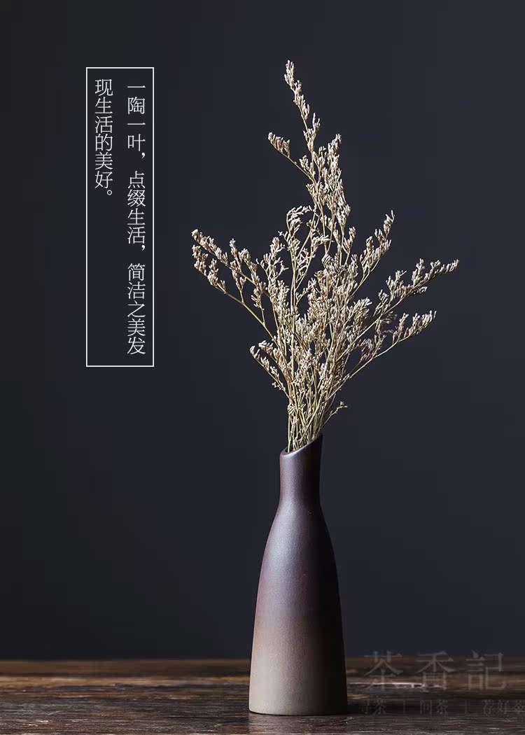 粗陶玉壺瓶 斜口 花器 花插 梅瓶 家用擺飾 茶席零配1入