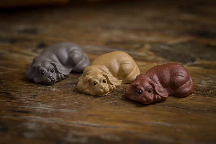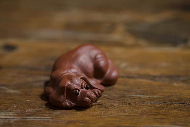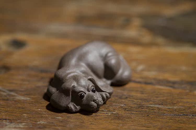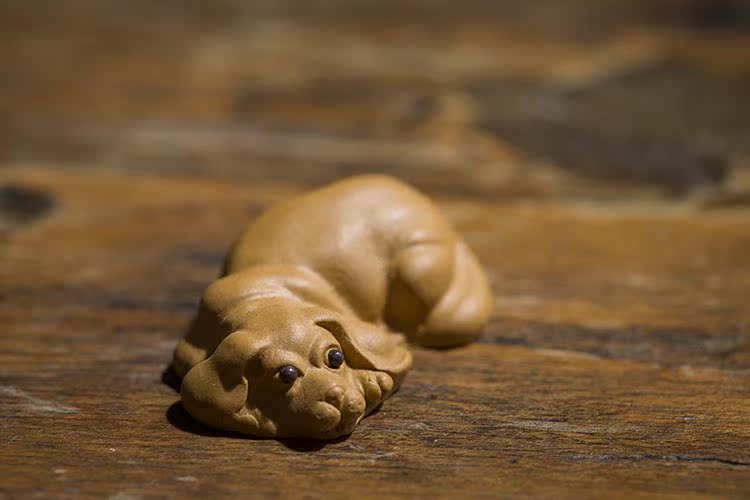 紫砂 迷你小雕件茶寵 -旺財狗 擺件 茶道零配件1入