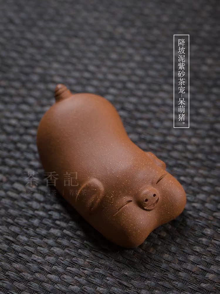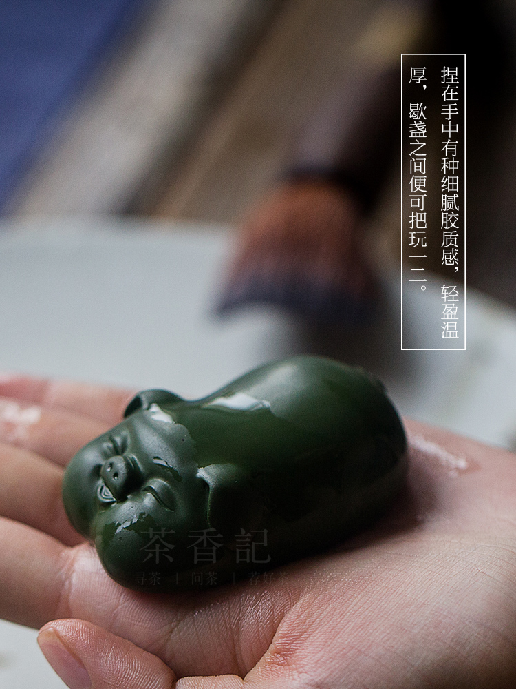 紫砂茶寵 呆萌豬 原礦綠泥 茶玩 擺件 茶道零配1入