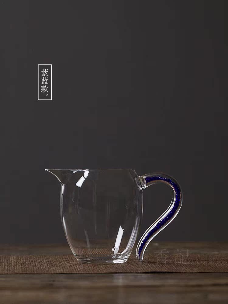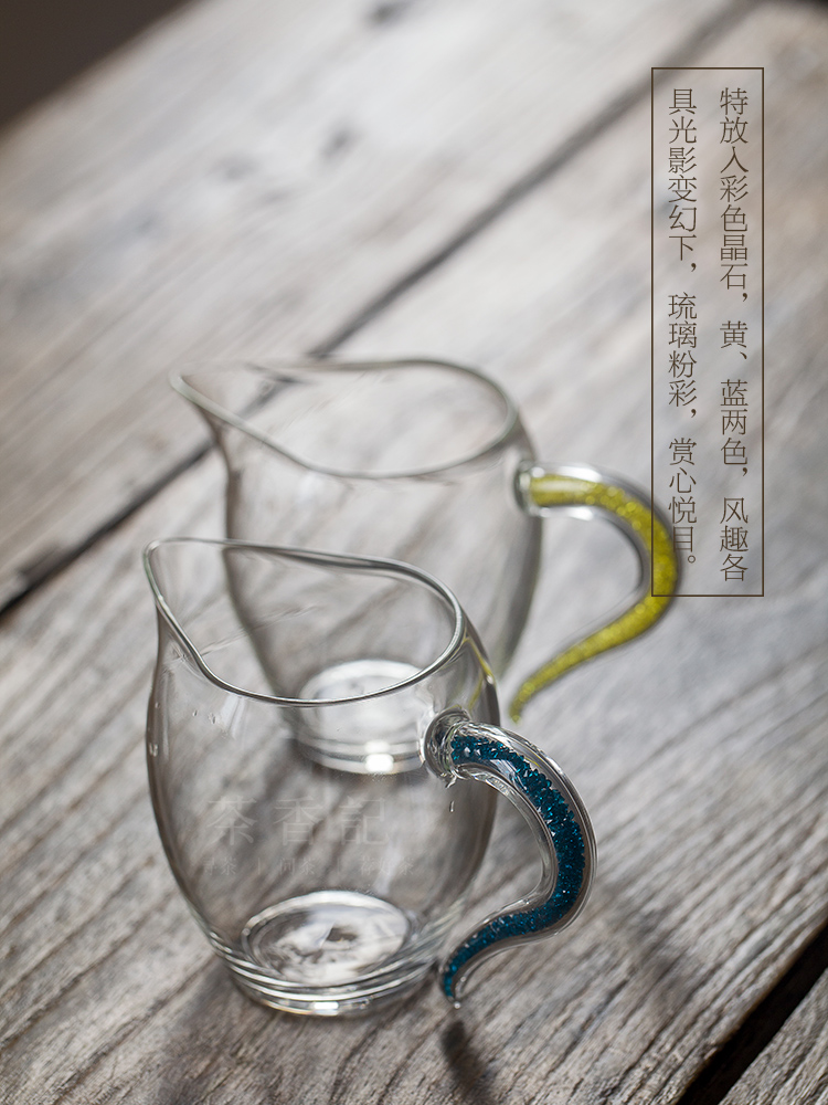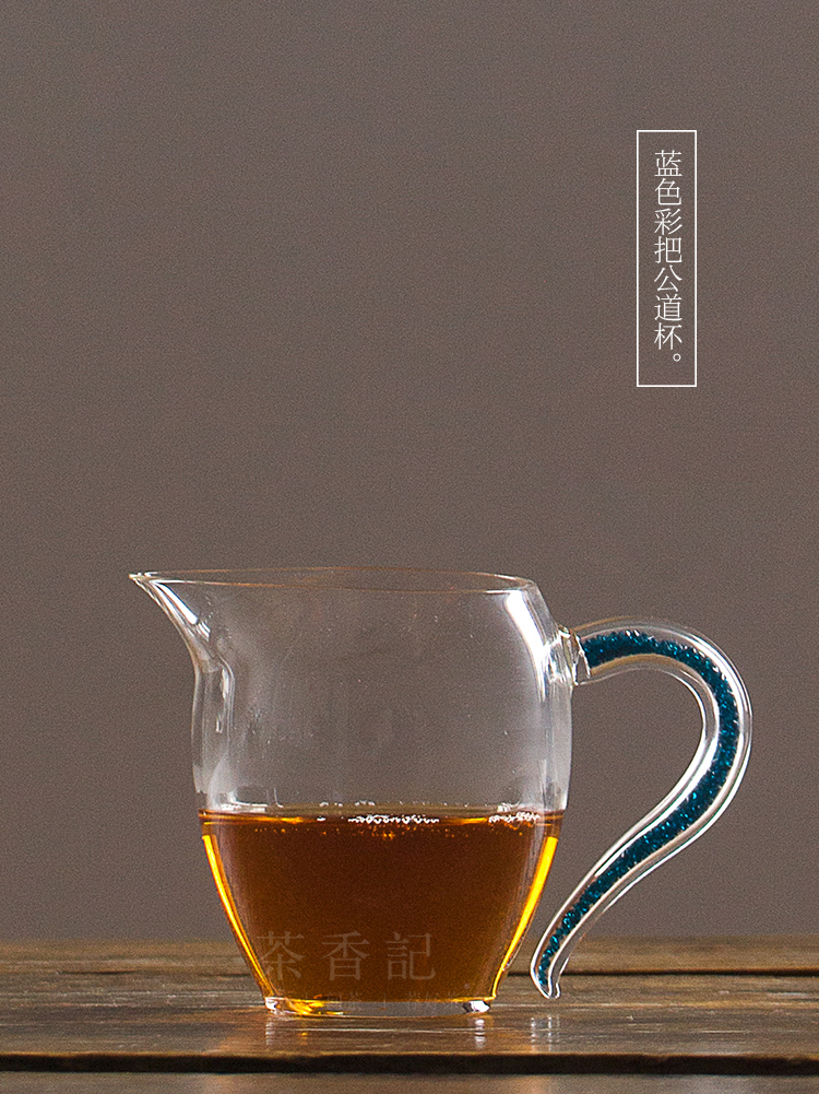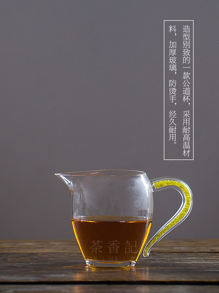 透明玻璃公道杯 加厚彩把耐熱分茶器 功夫茶具配件1入