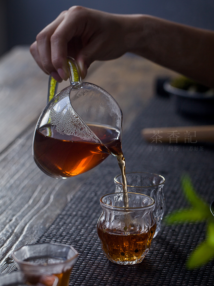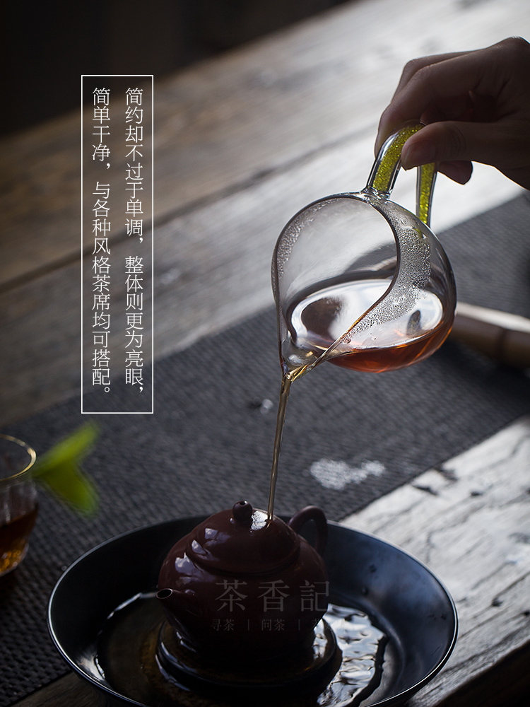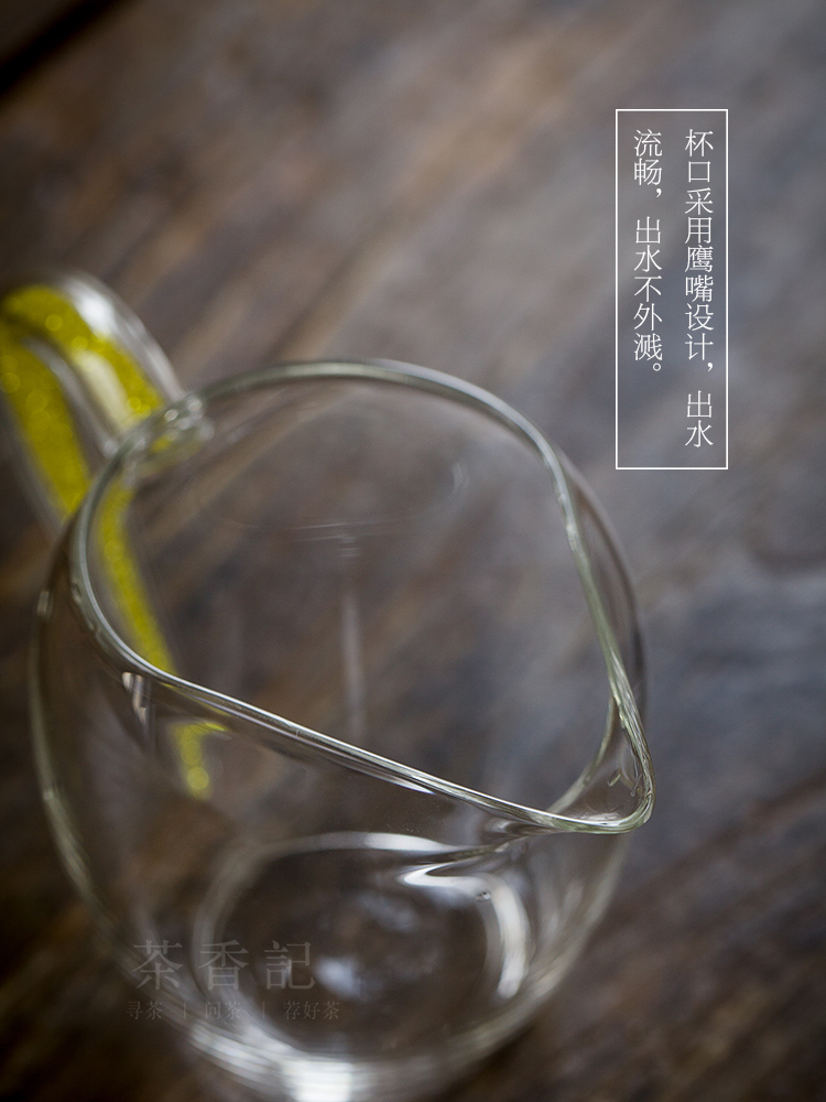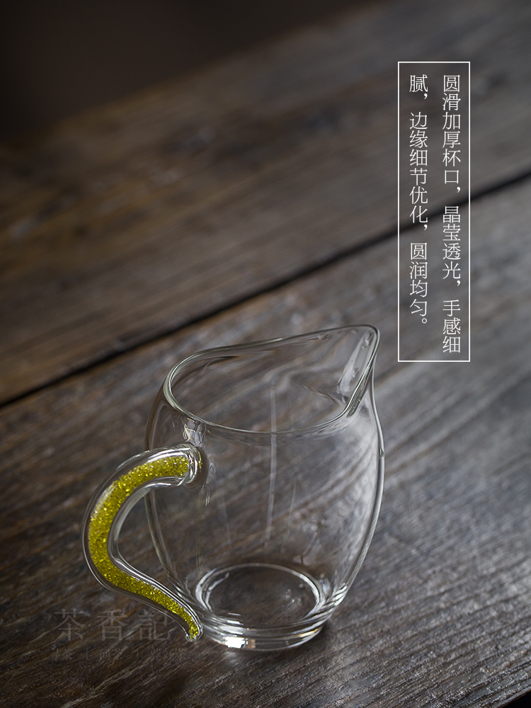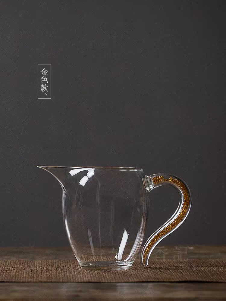 透明玻璃公道杯 加厚彩把耐熱分茶器 功夫茶具配件1入