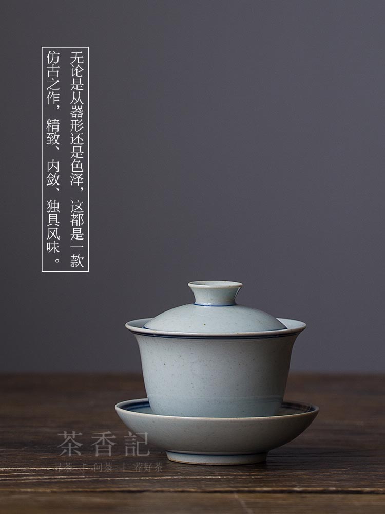 隱山堂雙線玉蘭蓋碗 功夫茶具 仿古青花 玄紋蓋碗1入