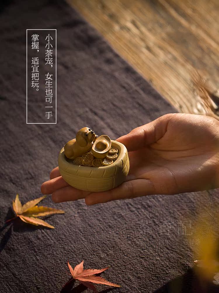 紫砂段泥旺財小狗 茶寵擺件 可愛 招財進寶 宜興 狗年財運1入