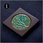 點藍彩手工 黑檀木鋅合金 杯墊-柳綠枝干 杯墊1入