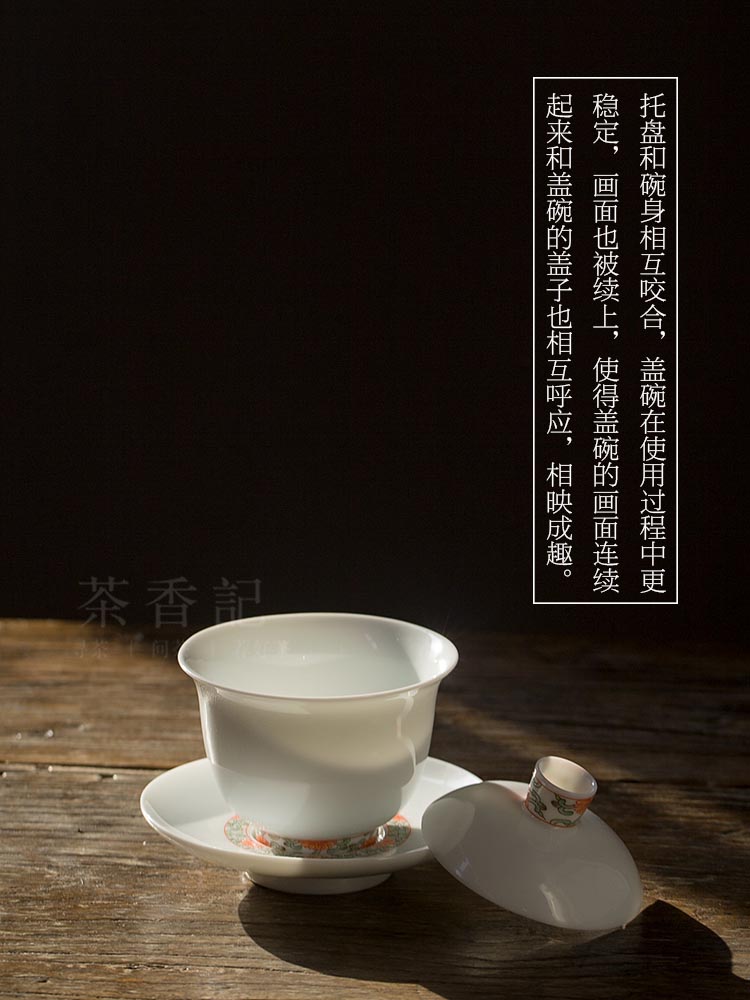 高白泥琺瑯彩邊蓋碗 品茗杯 高雅古韻 三才蓋碗 功夫茶具1入