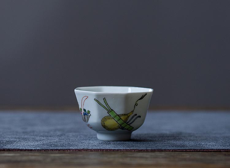 [4]仿古八方杯 仿古泥料 八方器型 品茗杯 茶杯 經典圖案1入