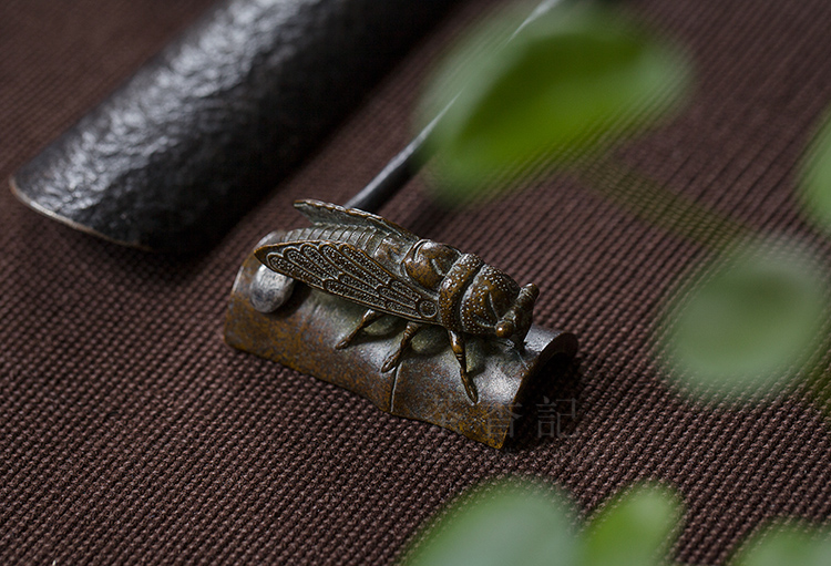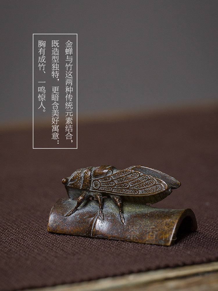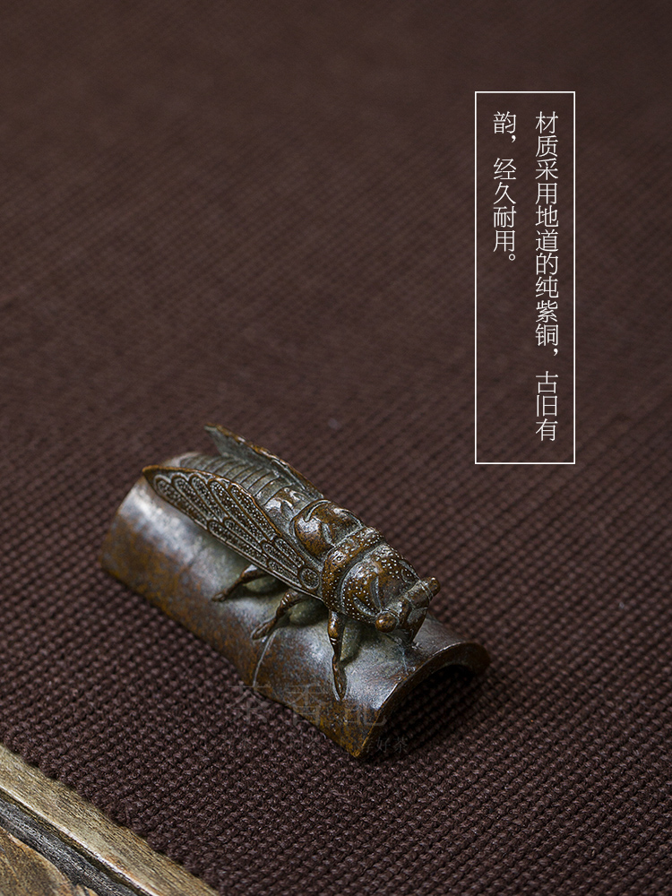 金蟬紙鎮 匙置 手作紫銅 茶寵 擺件賞玩1入