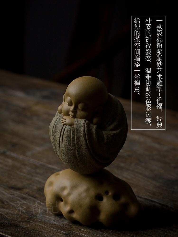 段泥粉漿紫砂藝術雕塑 祈福 王登龍 原礦全手工 佛家1入