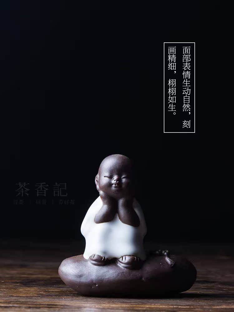 靜思小和尚茶寵 紫砂茶寵擺件 手工茶玩 茶道零配1入