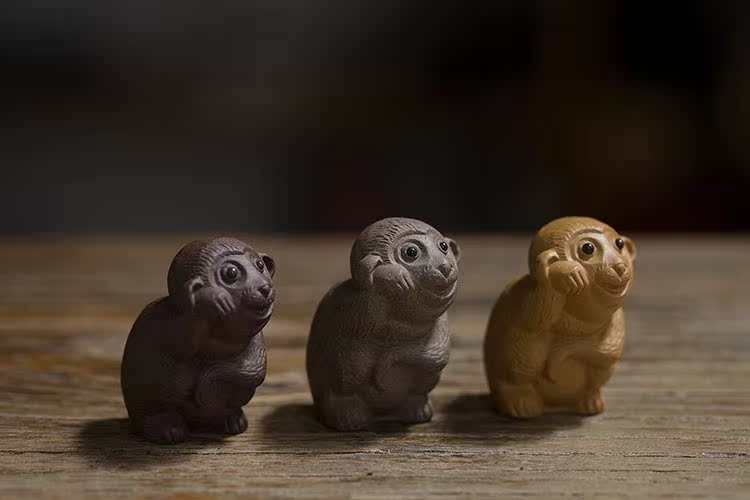 紫砂 迷你小雕件茶寵 頑皮猴 擺件 茶道零配件1入