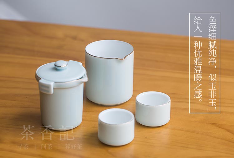 霽藍釉旅行茶具套組 陶瓷快客杯 一壺兩杯辦公室泡茶器1入