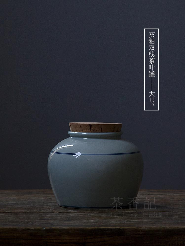 隱山堂灰釉雙線茶葉罐 復古 茶倉 醒茶罐 存茶罐1入
