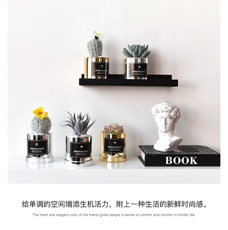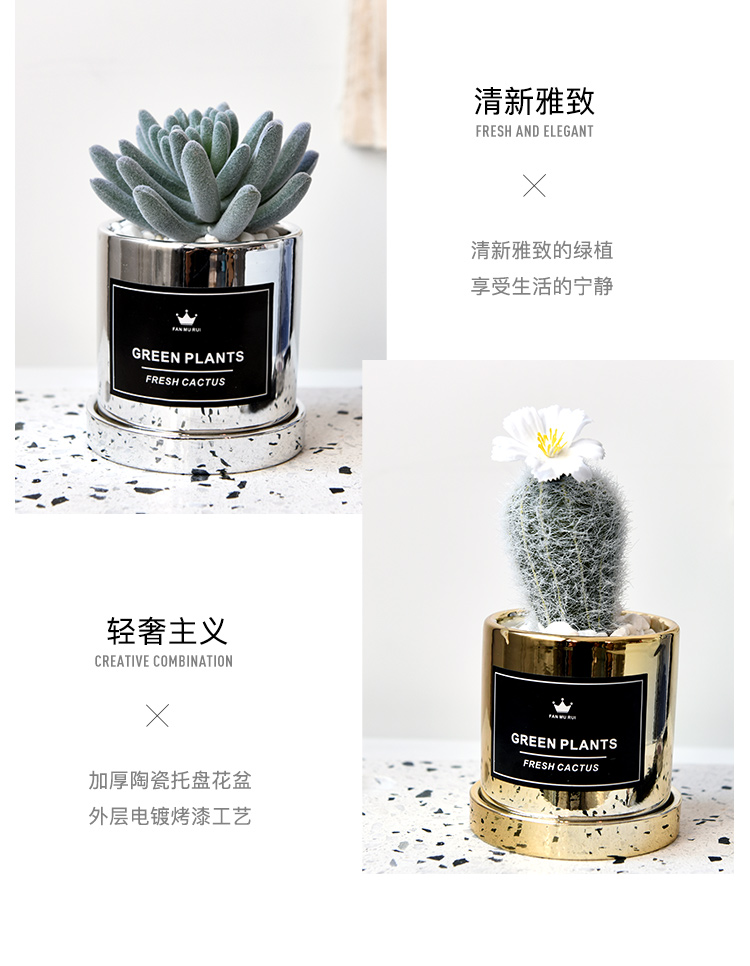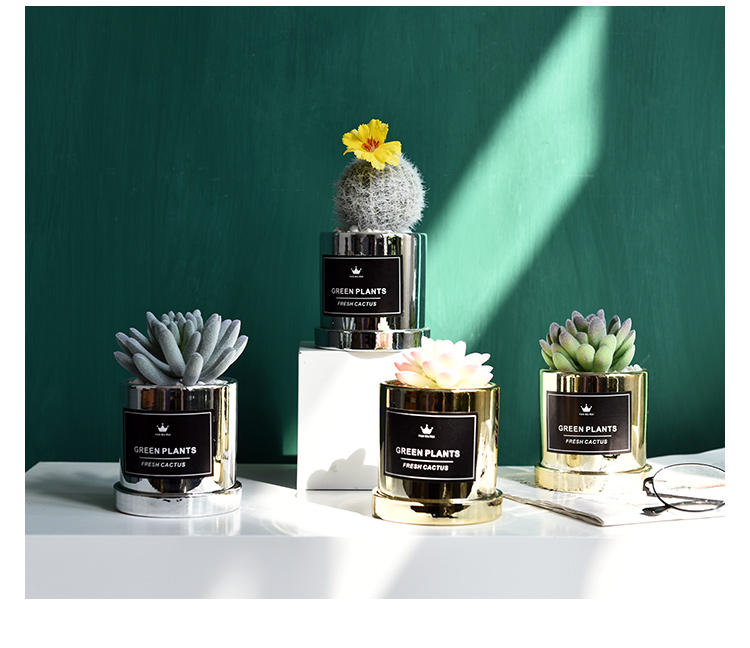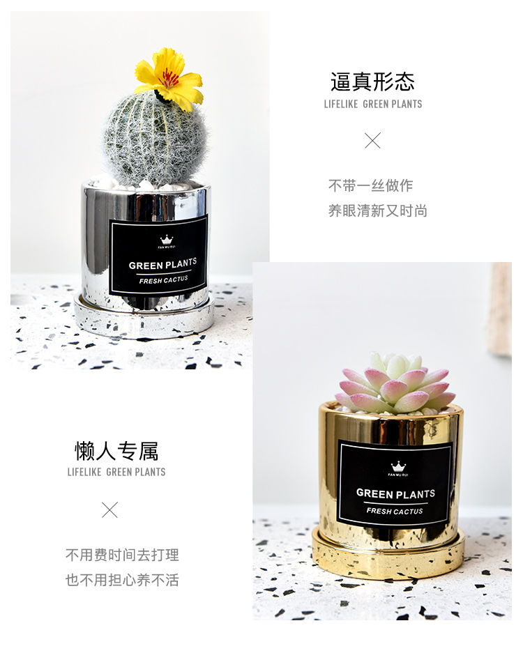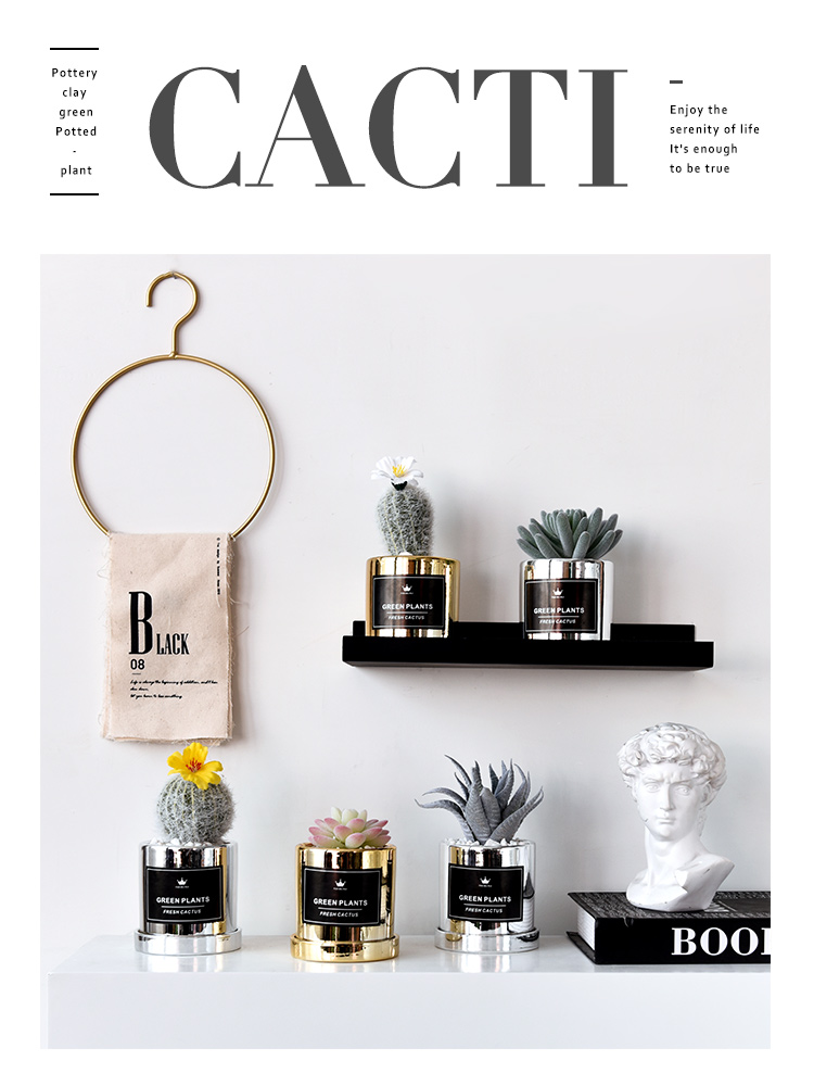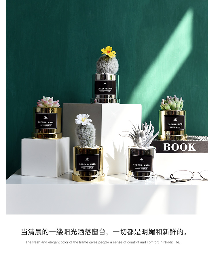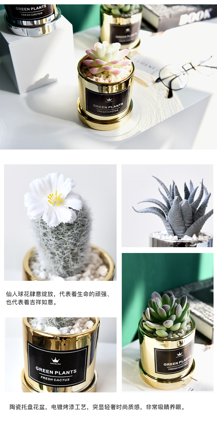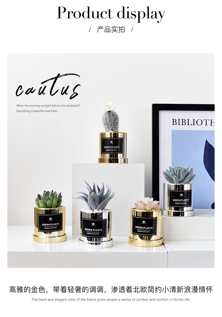 北歐輕奢金色仙人掌多肉仿真植物盆栽創意仙人球盆景桌面裝飾擺件1入