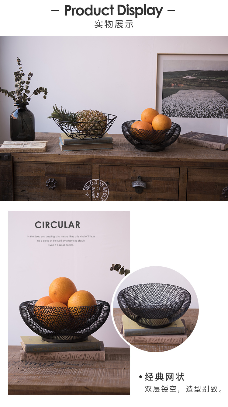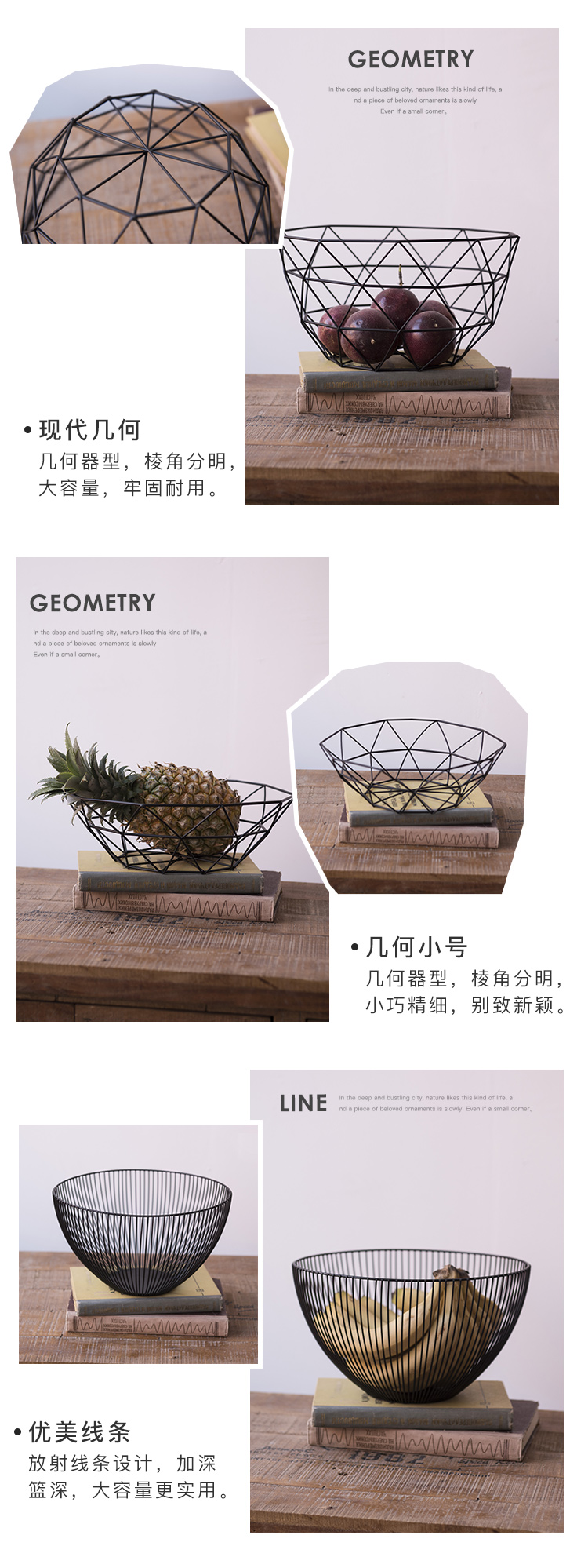 北歐簡約幾何鐵藝水果籃客廳家居水果盤家用創意收納籃果盆零食盤1入