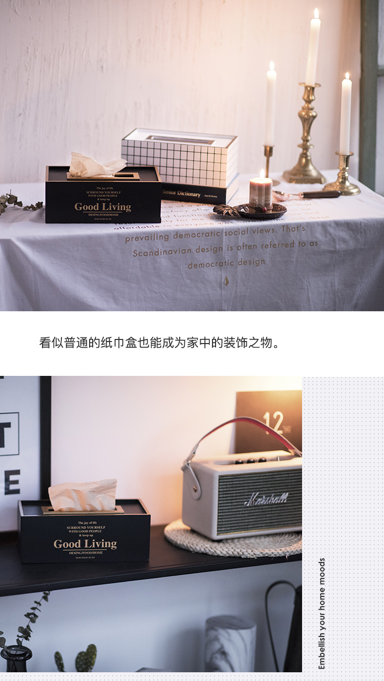 北歐INS簡約創意木質紙巾盒歐式客廳抽紙盒家用餐巾紙抽盒收納盒1入
