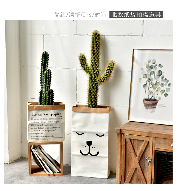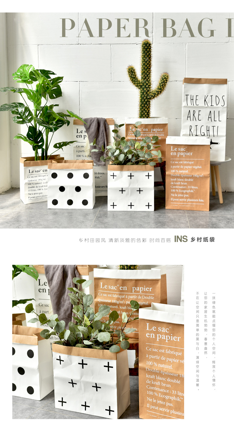 創意ins家居文藝法文加厚雙層客廳牛皮紙袋收納袋櫥窗裝飾道具1入