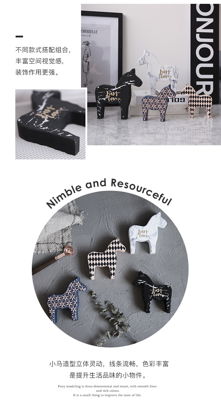 北歐文藝大理石紋木馬擺件簡約電視柜客廳書房店鋪餐廳裝飾品擺設1入
