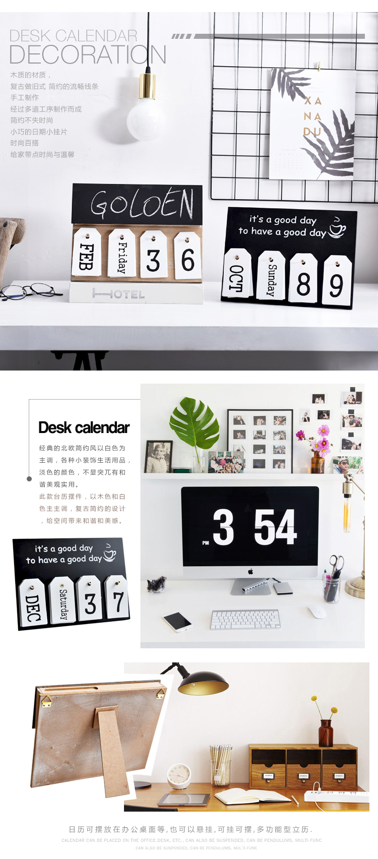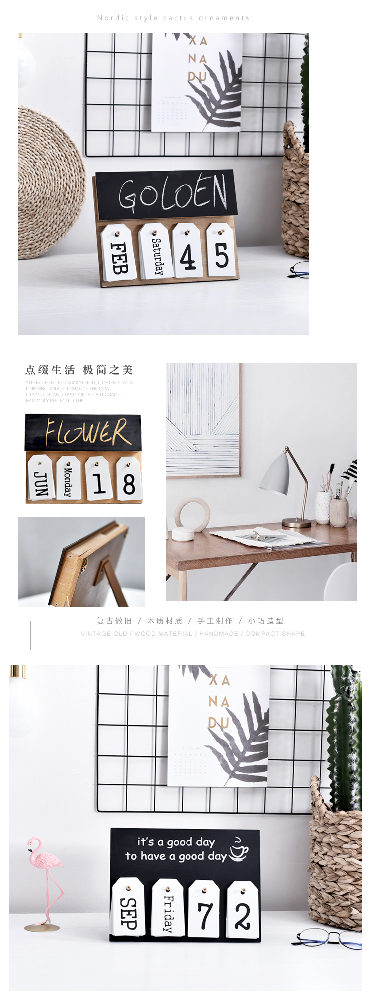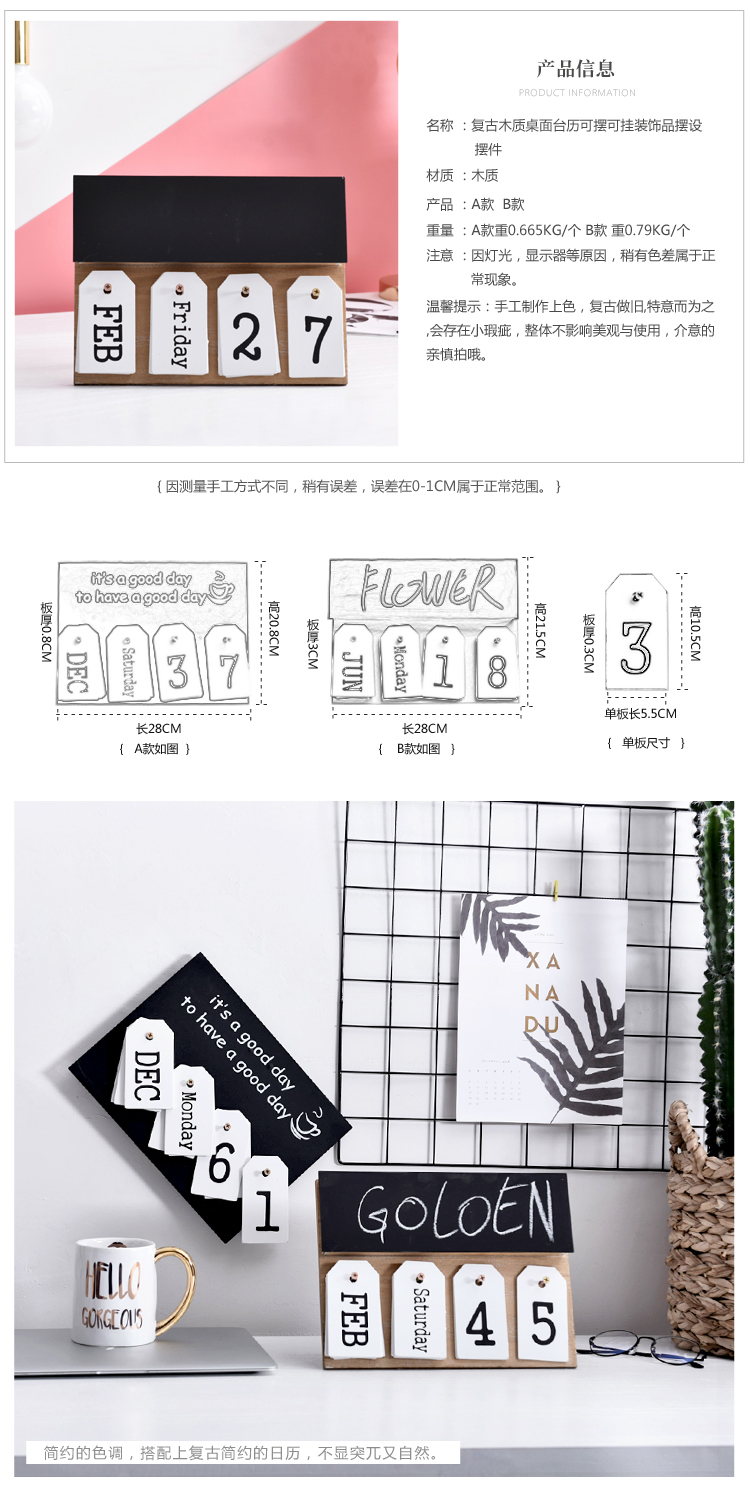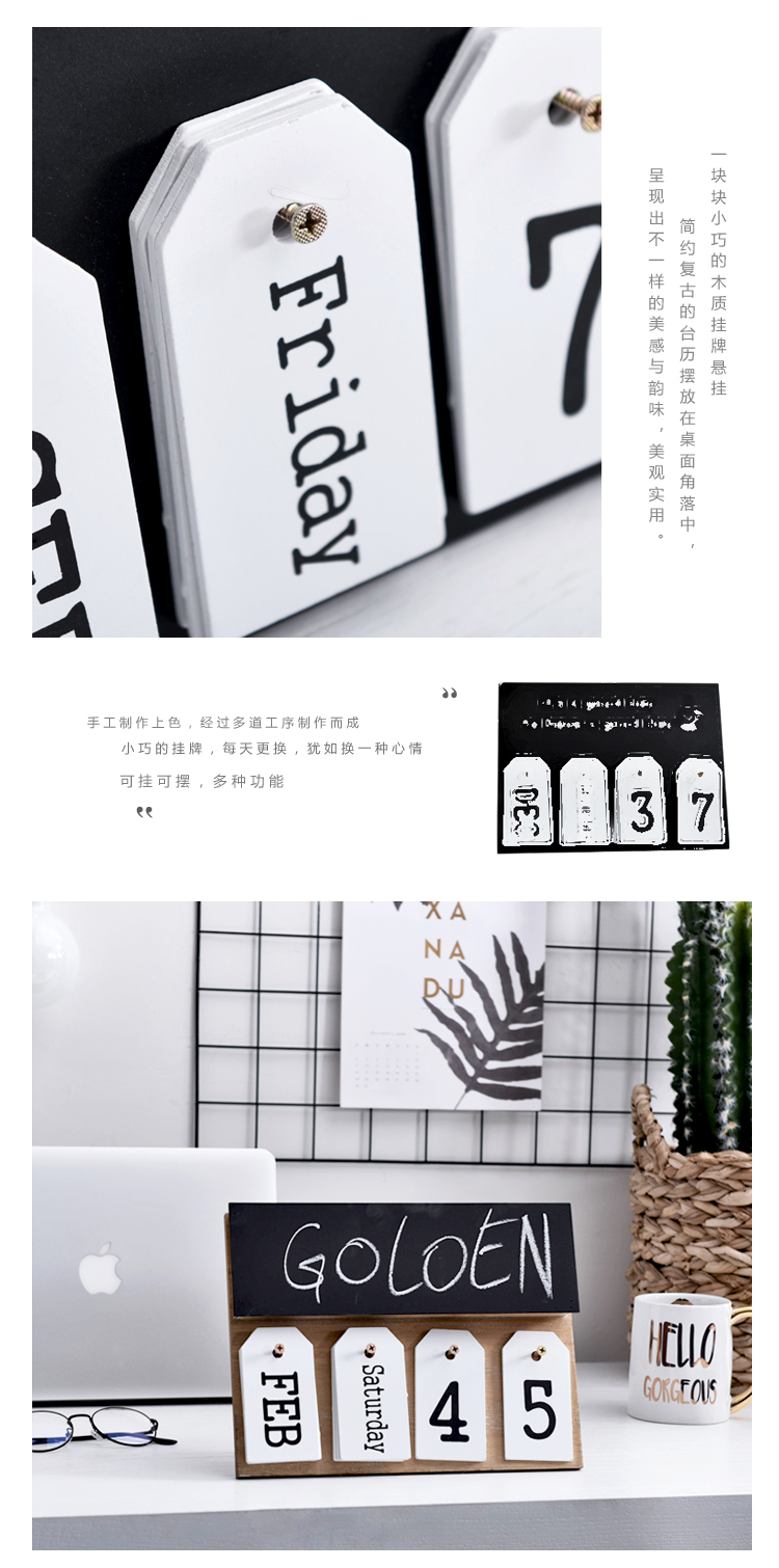 北歐現代簡約文藝創意日歷擺件設拍攝影道具臺歷萬年歷裝飾品可掛1入