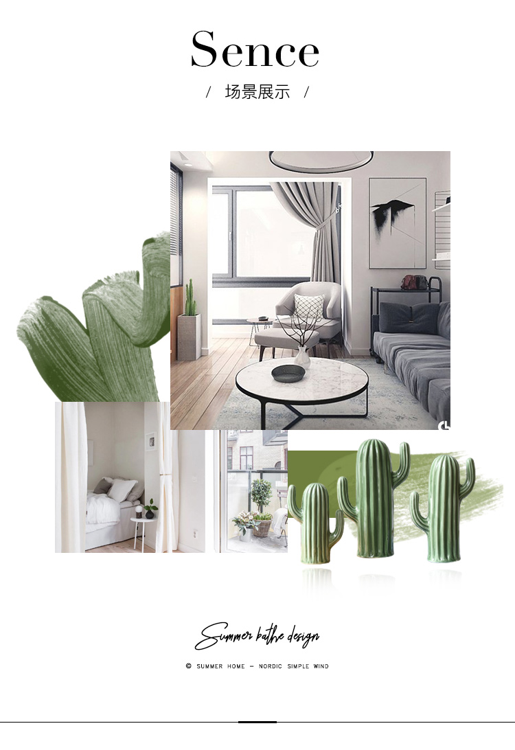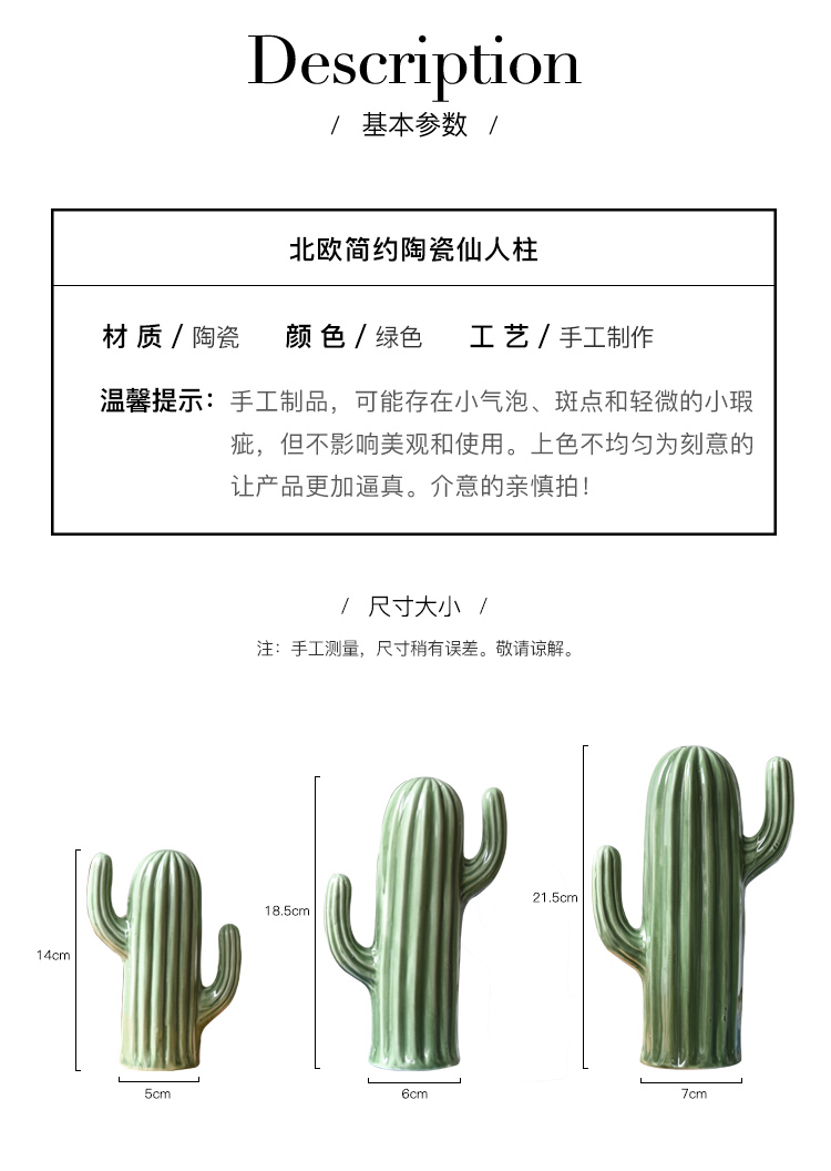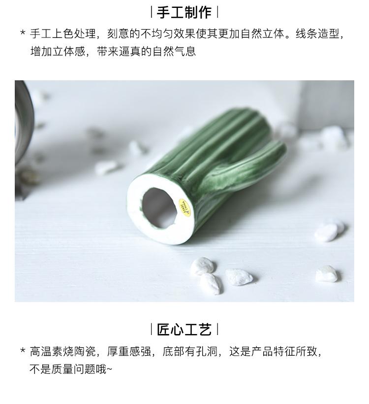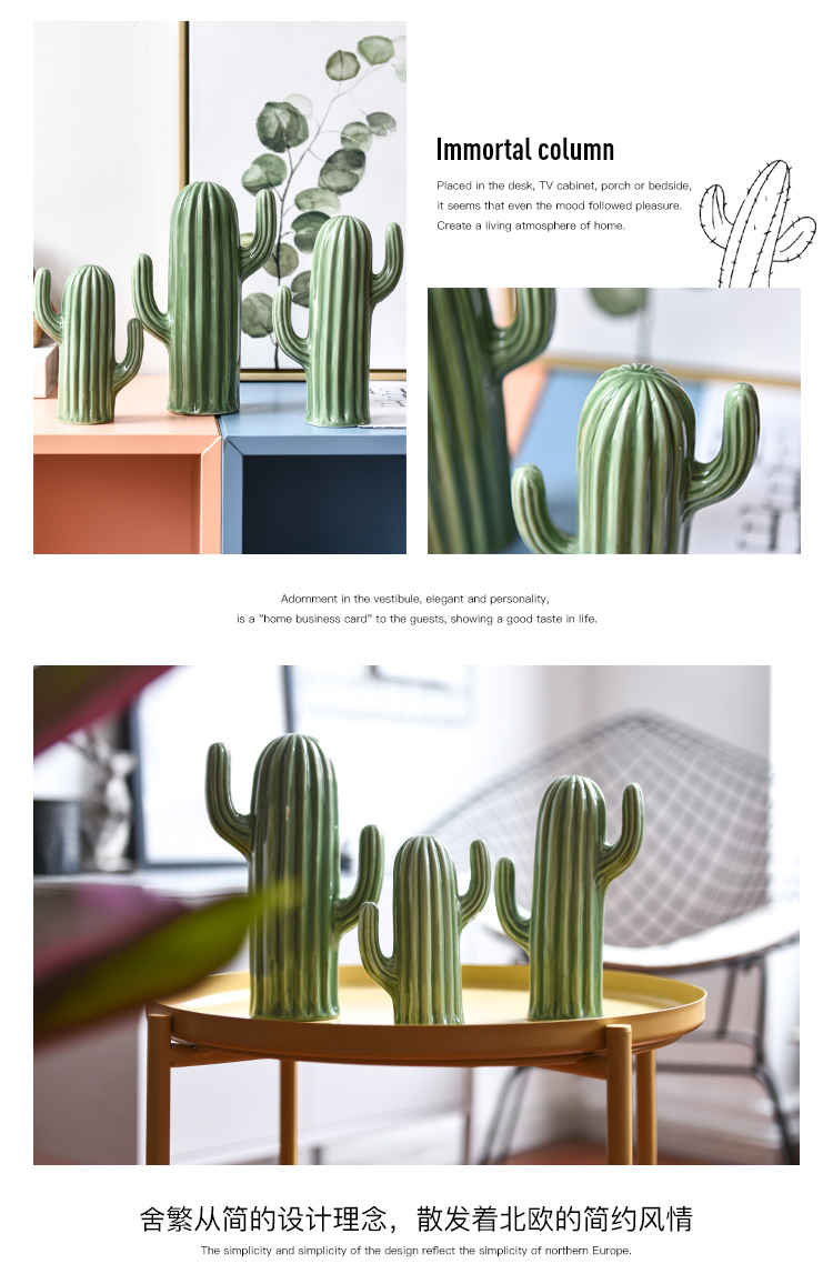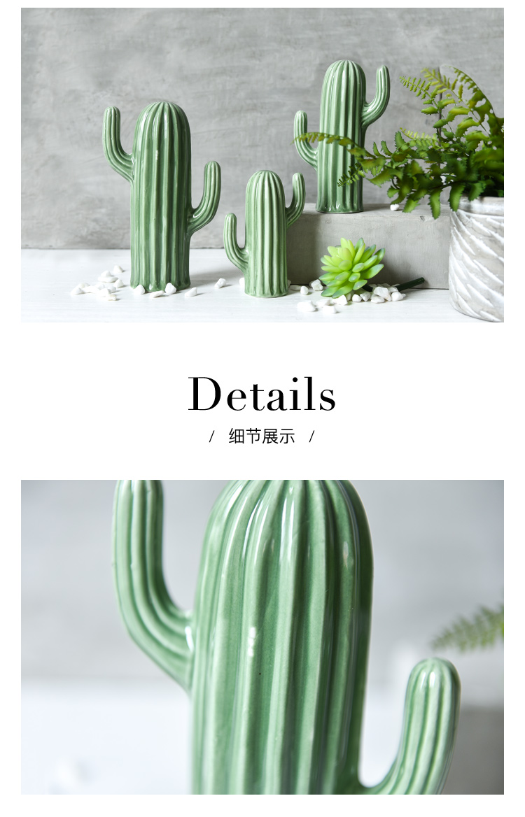 北歐風仙人掌造型陶瓷家居擺件客廳植物造型裝飾品仙人柱擺設道具1入